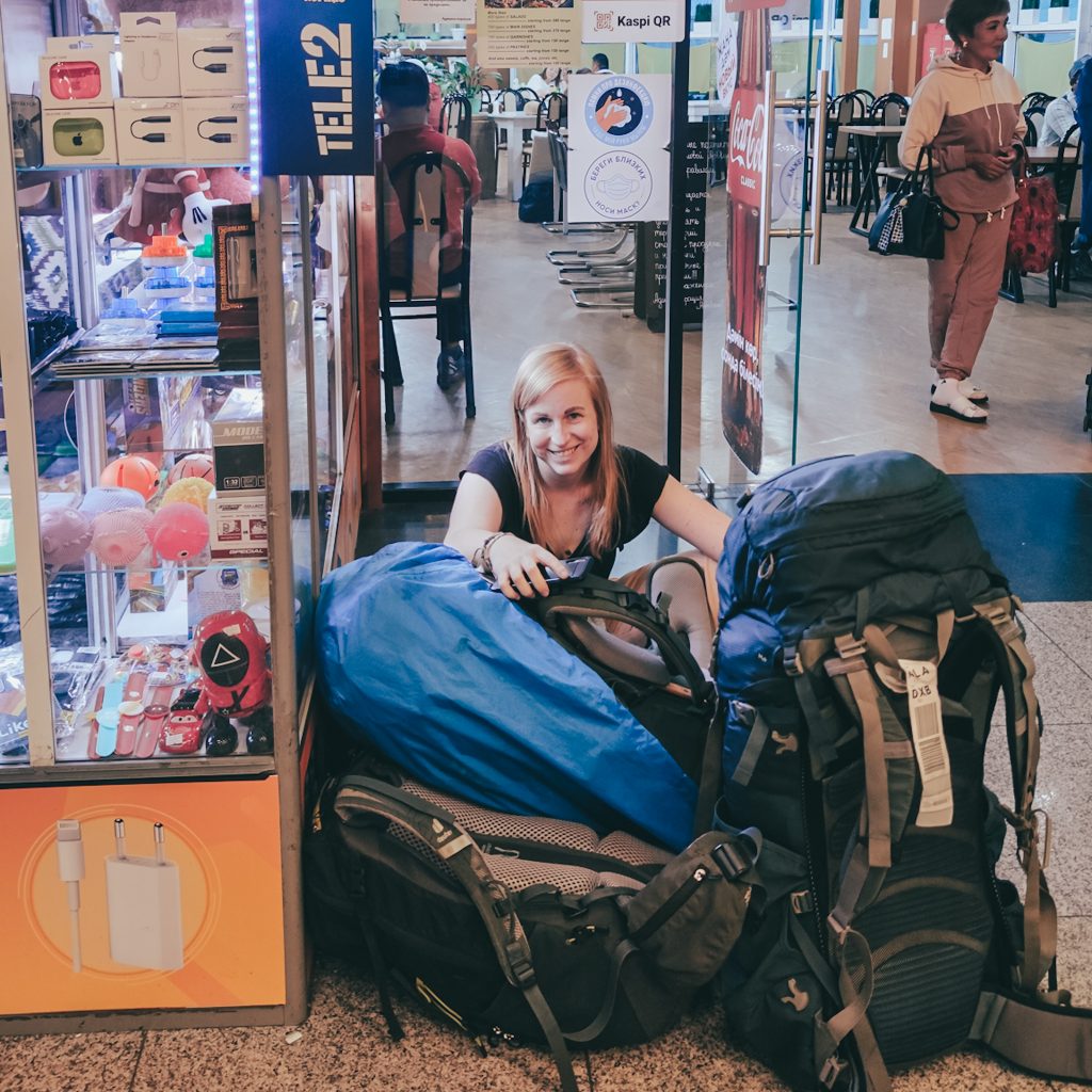 Morgens um 4 Uhr in Almaty am Flughafen. Wir stehen, so lange wie noch nie, in der Warteschlange für die Einreise. Dabei geht es eigentlich ganz fix, Foto machen Stempel setzen. Als wir durch sind, geht’s in die Ankunftshalle. Erst Geld abheben und dann eine Simkarte kaufen.