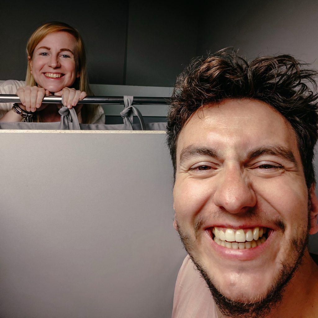 Bis zum Hostel, da werden wir wieder auf den Boden der Tatsachen geholt. Es ist viel los, plötzlich springen auch Kinder durch die Gänge, hier scheinen auch Familien zu wohnen. Die Küche ist voller Leute, aaaber: wir werden nett begrüßt und die Dame, die wir Xeniya getauft haben, hat im wachen Zustand wesentlich bessere Laune. Wir sind sehr müde und verziehen uns schnell aufs Zimmer. Die Nacht wird etwas hnruih9, es ist sehr warm im Zimmer, von draußen scheint Licht herein und die anderen Bewohner:innen scheinen weniger Schlaf zu brauchen als wir.