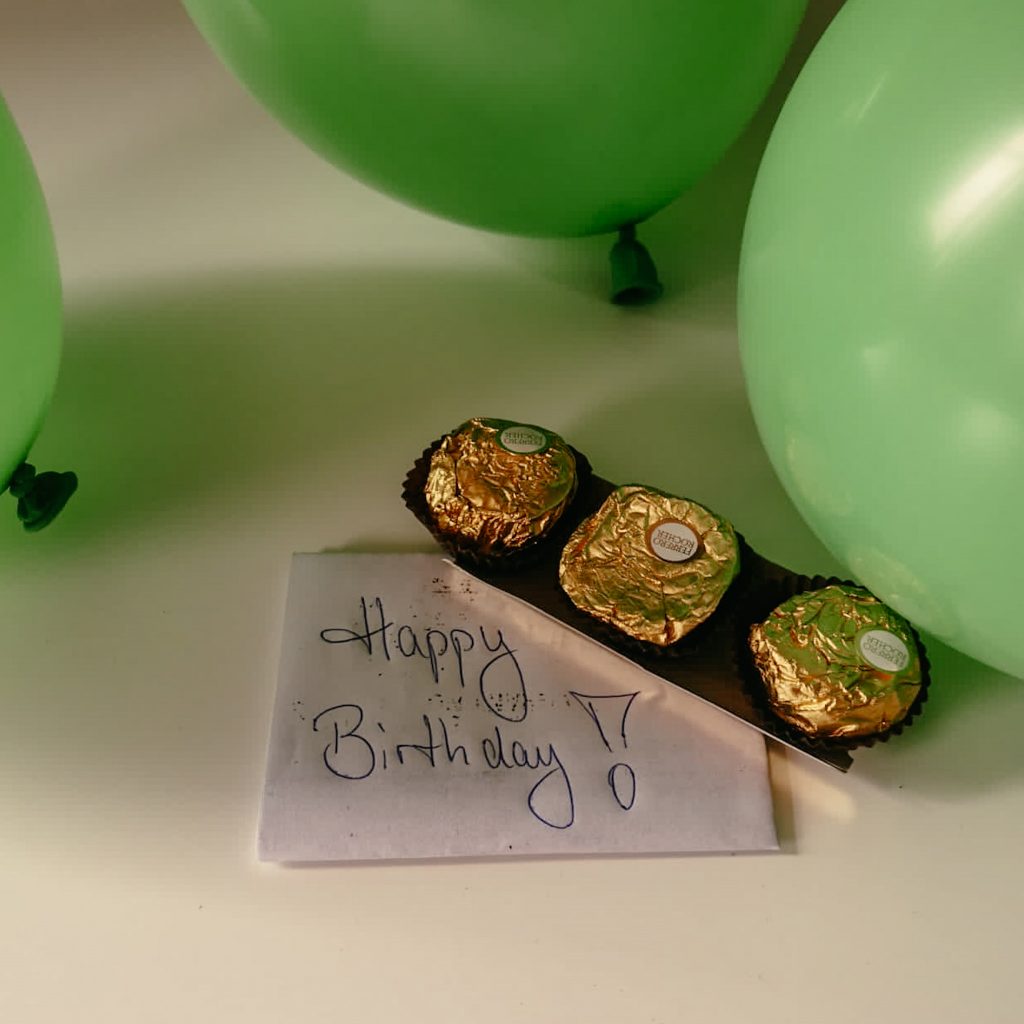 Am Morgen wird Caro mit Luftballons, einem süßen Geschenk und drei Rocher (die mittlerweile zwei mal geschmolzen, verformt und wieder gekühlt wurden) überrascht.