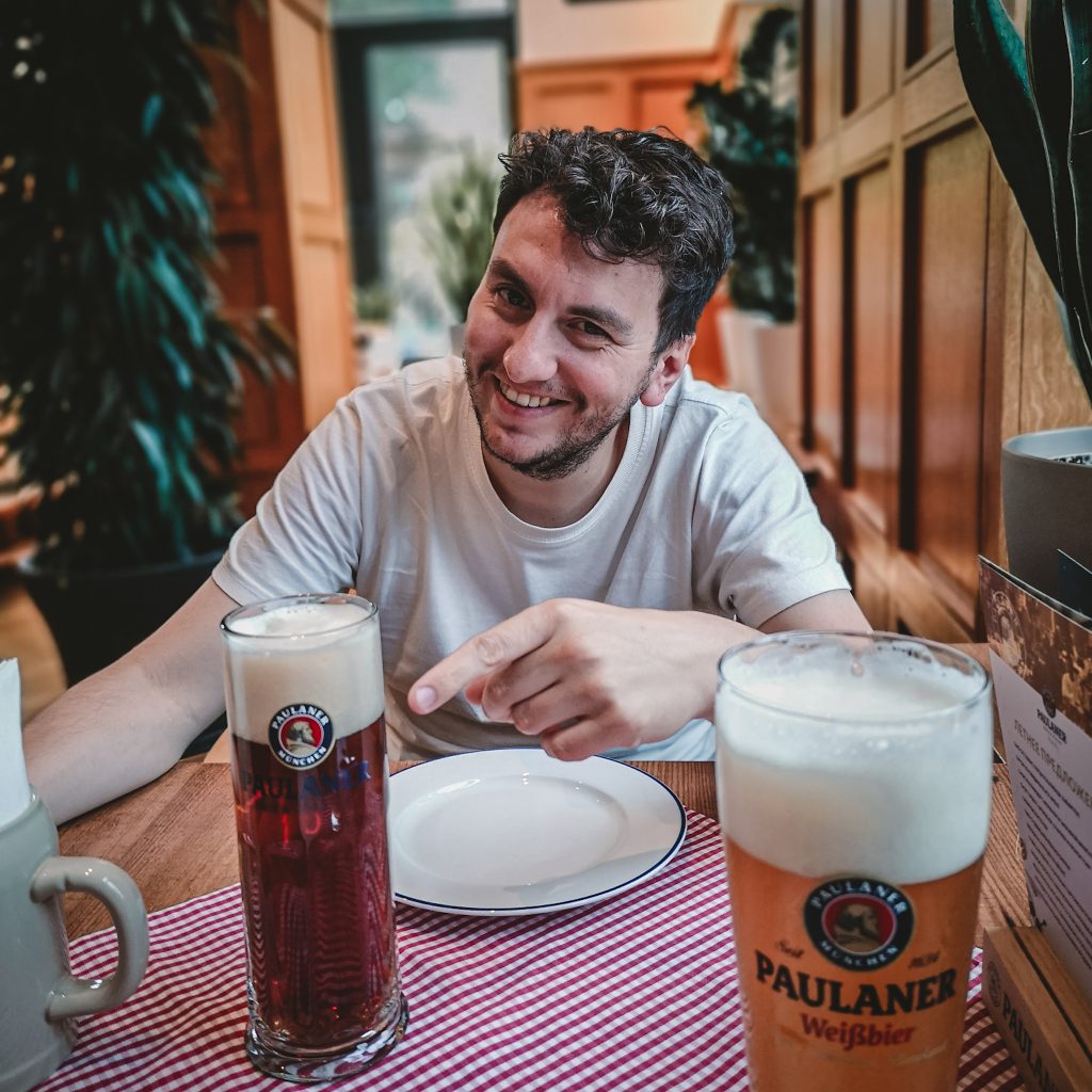 Direkt nach dem Kauf der Simkarte konnten wir mit der kasachischen Mobilnummer online einen Arzttermin vereinbaren. Nach einigen Anlaufschwierigkeiten bei der Anreise, hat uns ein netter Barmitarbeiter einfach über Yandex einen Fahrer bestellt. Er erklärt uns dann auch, dass die App russisch ist und wir wahrscheinlich deshalb Probleme haben, die App zu installieren. Obwohl Caro online an einem völlig anderen Ort einen Arzttermin gebucht hat, können wir trotzdem bleiben und Caro bekommt ein Antibiotikum verschrieben. Nach diesem ersten Programmpunkt können wir nicht anders und kehren beim direkt gegenüber liegendem Paulaner Brauhaus mit Biergarten ein – Zufälle gibt’s 😅 Wir gönnen uns Brezeln mit Obazda und planen den weiteren Tag.