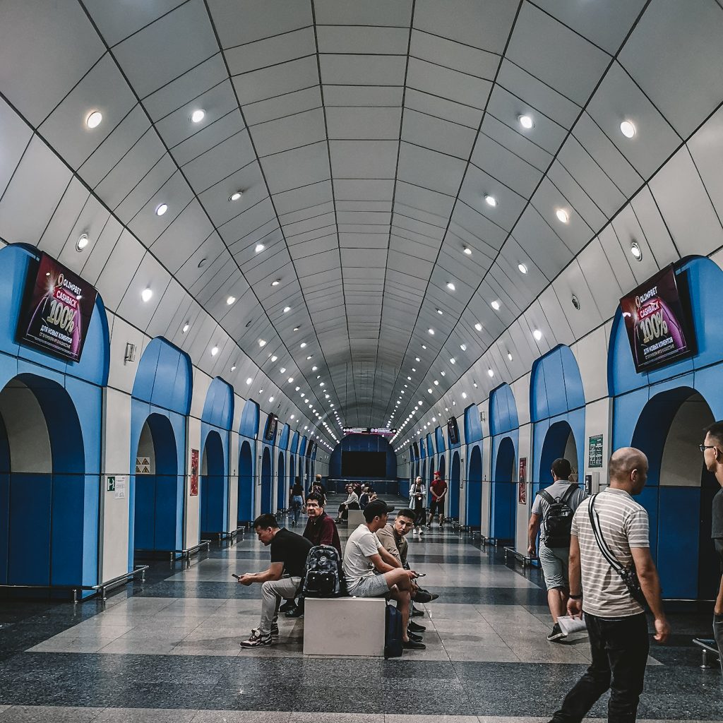 Wie wir schon von unserem Taxifahrer gelernt haben, gibt es eine kleine aber feine Metro in Almaty. Es gibt eine Linie, 11 Stationen auf einer Länge von 13,5 km,die 2011 eröffnet wurde. Laut Reiseberichten soll die Haltestelle Baikonur besonders schön sein. Es kommt uns etwas komisch vor, aber gut, auch das nehmen wir natürlich mit. Die Fahrt mit der Metro ist weniger spektakulär, außer, dass sie seeeehr tief unter der Erde liegt und wir wahrscheinlich mit der längsten Rolltreppe überhaupt gefahren sind. Die Station an sich ist dann so unspektakulär, dass wir erstmal googlen, ob wir uns in der Haltestelle geirrt haben.