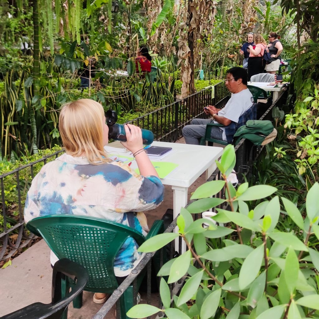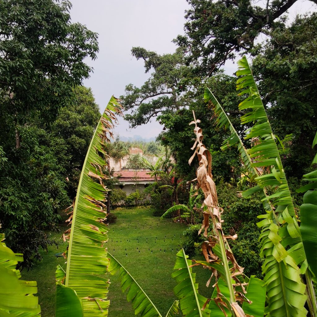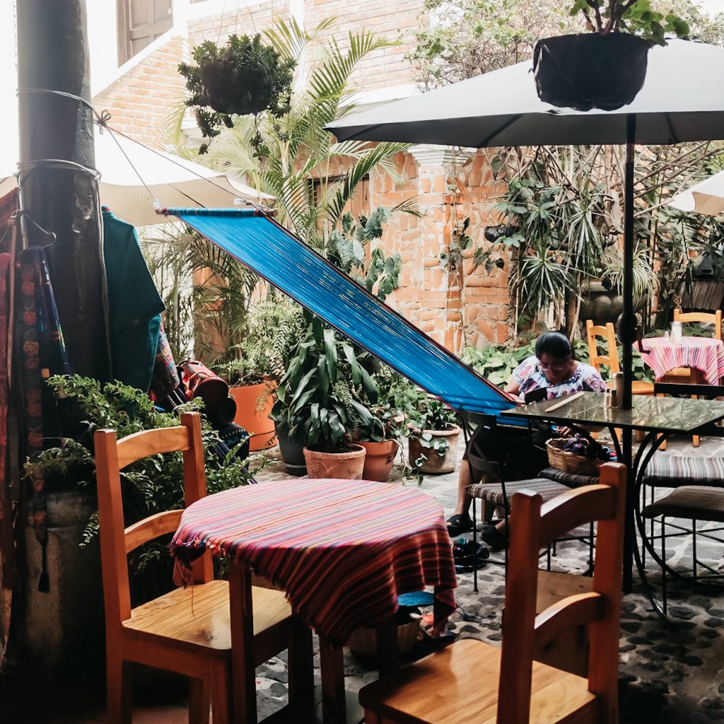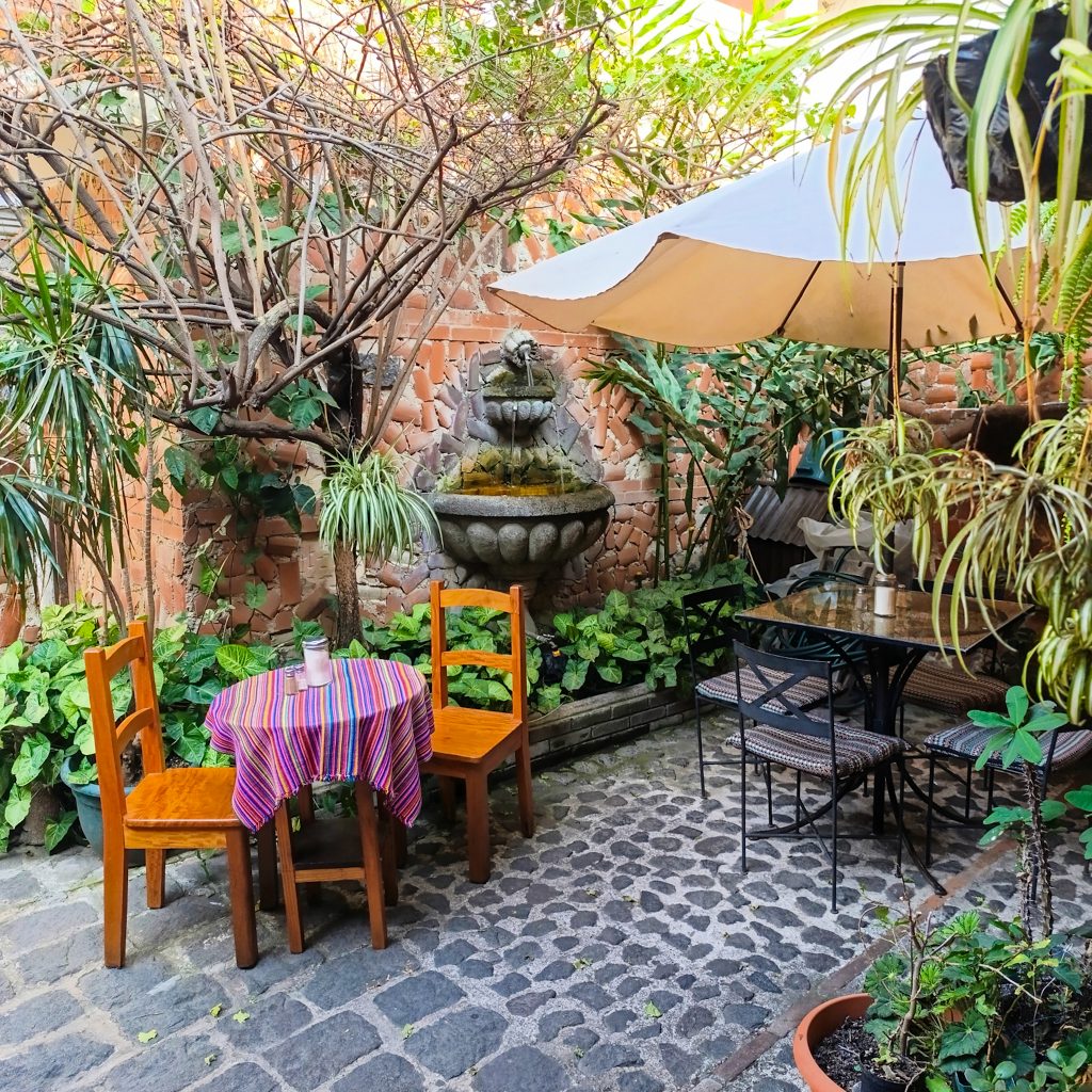 Carlos begrüßt uns sehr nett und höflich und ehe wir uns versehen, machen wir uns schon auf den Weg in den Garten. In den Garten? Genau. Die Spanischstunden unserer Sprachschule finden alle in einem großen Garten oder vielmehr in einer Eventlocation statt. Während hier am Wochenende oder am Abend Events wie Konzerte, Kulturveranstaltungen und Hochzeiten stattfinden, dürfen tagsüber die Schüler:innen hier pauken. Der Garten liegt am Rand der Innenstadt. Hinter einem großen Tor erstreckt sich ein großes Gelände. Überall verteilt stehen kleine Tische mit zwei bis drei Stühlen. Hier findet der Unterricht, entweder 1:1 oder 2:1 mit den Lehrkräften statt. Es ist wunderschön. Nachdem wir auf dem Weg zum Garten schon ein bisschen auf Spanisch geplaudert haben (wir vermuten, Carlos wollte dadurch unser Niveau testen), führt Carlos uns nach Ankunft im Garten herum.