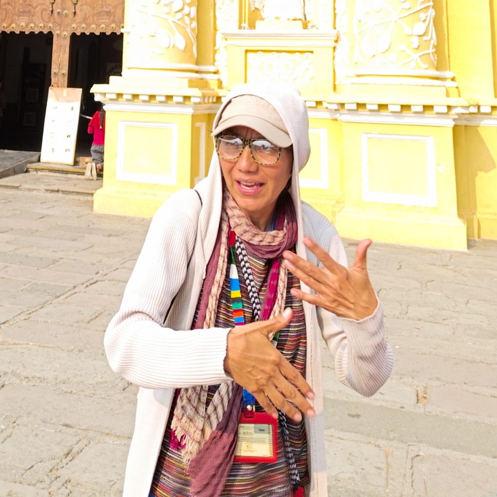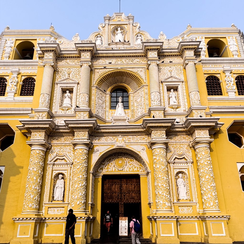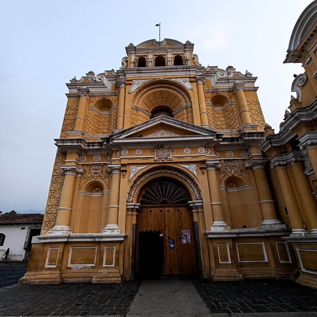 Ihr kennt uns. Wir lieben Freewalkingtouren und wollen die Zeit hier nutzen, um in Antigua auch eine mitzumachen. Wir finden das Angebot von Claudia Nummer 2. Für einen Nachmittag melden wir uns an und treffen uns direkt bei der zentral gelegenen Kirche Iglesia de la Merced. Claudia 2 ist mittleren Alters, quirlig und direkt begeistert, dass wir hier Spanisch lernen. Zu unserem Glück bleiben wir nicht alleine mit ihr, sonst hätten wir die Tour wahrscheinlich komplett auf Spanisch gemacht und wären auch leicht überfordert von ihrer Art. Wahrscheinlich gut für unser Spanisch, aber weniger gut für alle Infos der Tour.