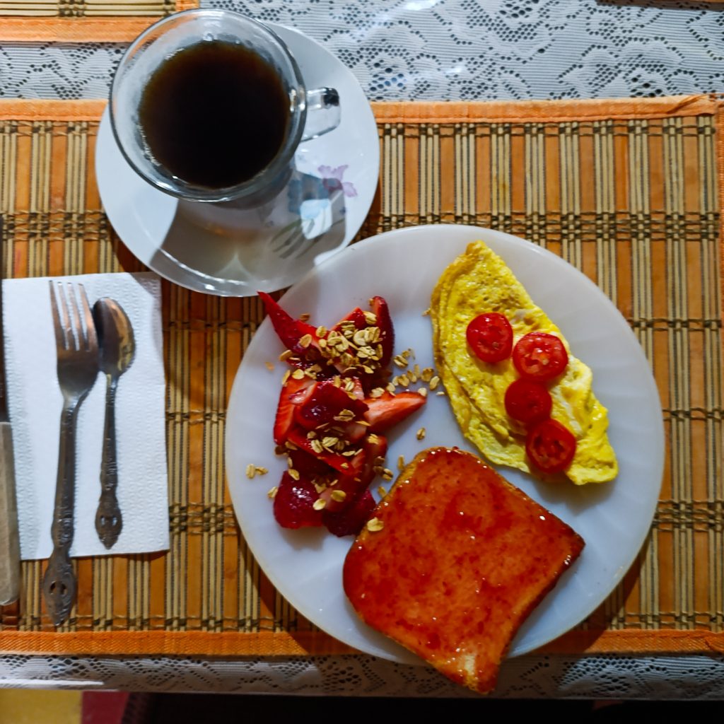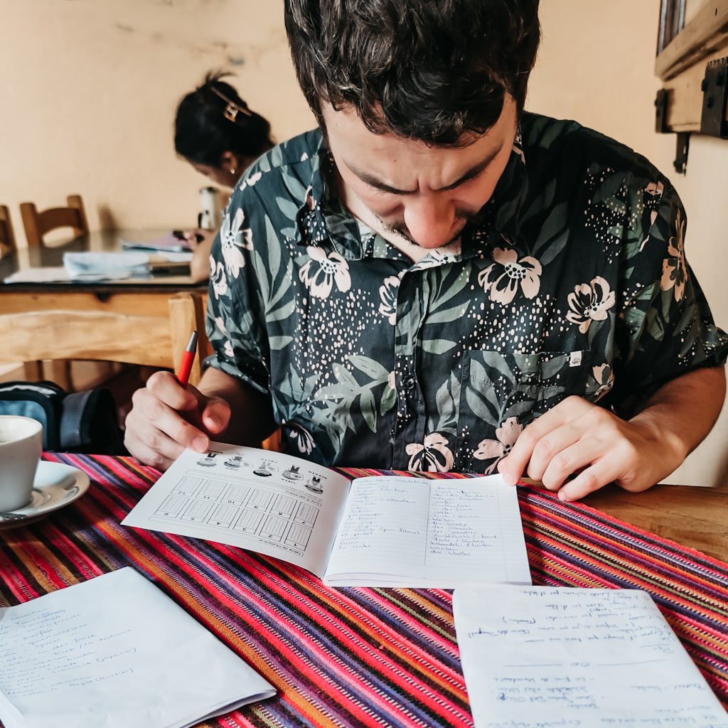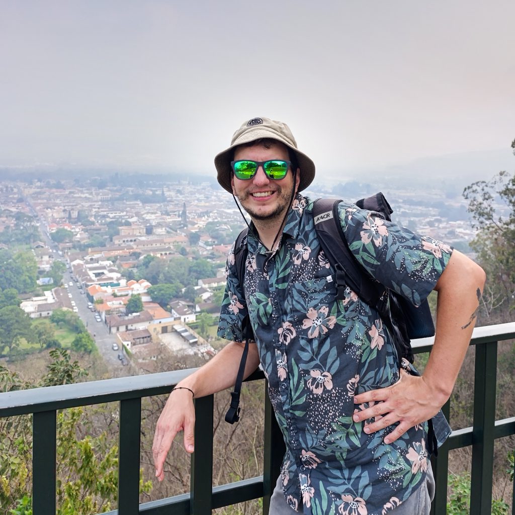 Pünktlich um 7 Uhr stehen wir zum Frühstück auf der Matte. Mit uns frühstückt noch ein Paar aus Neuseeland, die reisen allerdings heute ab. Zum Frühstück gibt es Rührei, ein bisschen Obst und Joghurt mit ein paar Haferflocken. Wir nutzen die Chance und stellen den beiden noch ein paar Fragen, danach machen wir uns auf den Weg zur Sprachschule. Auf den letzten Drücker lesen wir, dass wir etwas zu Schreiben mitbringen müssen. Wir kramen aus der hintersten Ecke ein paar lose Blätter hervor und los geht es. Bei der Sprachschule angekommen, gehen wir an ziiiemlich vielen wartenden Lehrer:innen vorbei. Im Büro erledigen wir kurz etwas Bürokratie, bekommen unsere ersten Lernunterlagen und werden dann unserem Lehrer für diese Woche vorgestellt: Carlos.