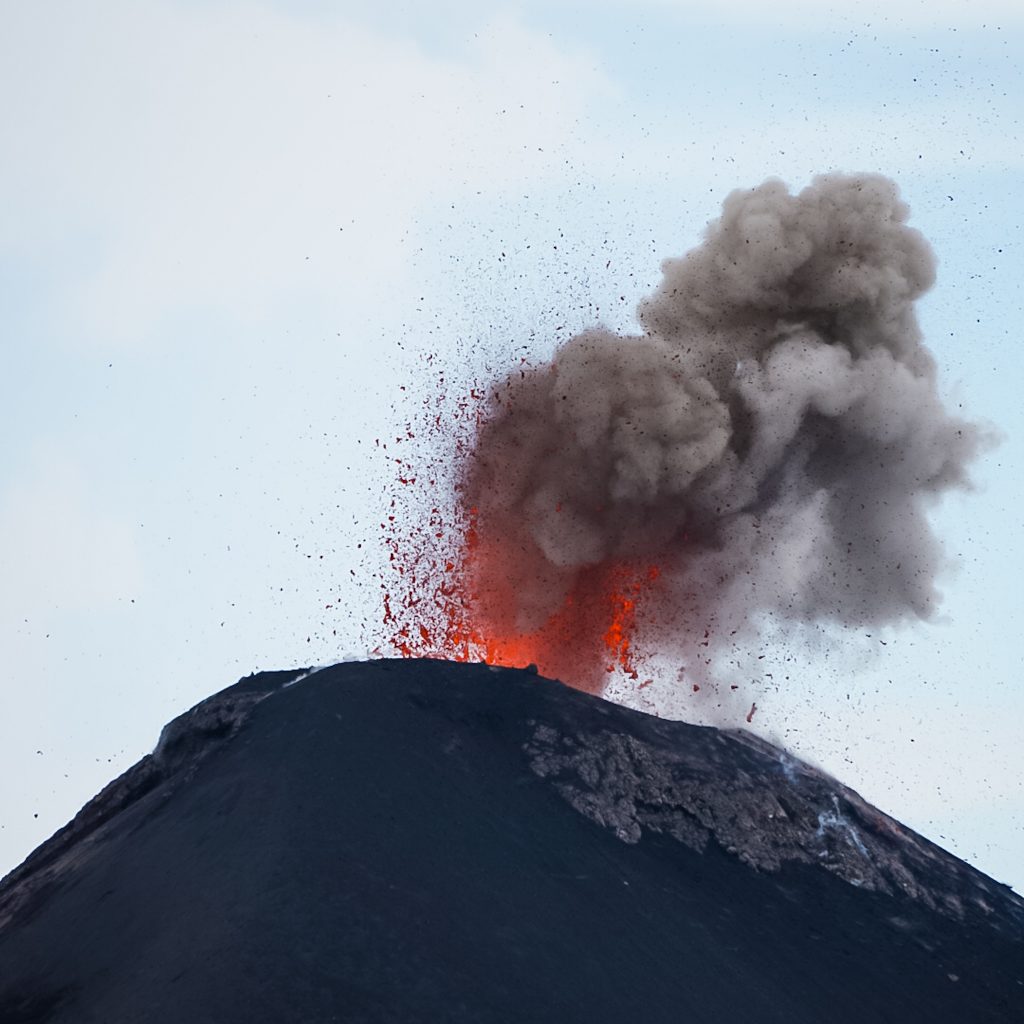 Wir erkennen die Gruppe, oder zumindest irgendeine Gruppe den Fuego hinaufgehen. Genau, als sie am weitesten Punkt angekommen sind, gibt es eine große Eruption. Viel Lava findet ihren Weg an die Erdoberfläche, wird ausgespuckt und läuft dann den Vulkan herunter. Wahnsinn. Dann hat sich der Ausstieg für die anderen mehr als gelohnt.