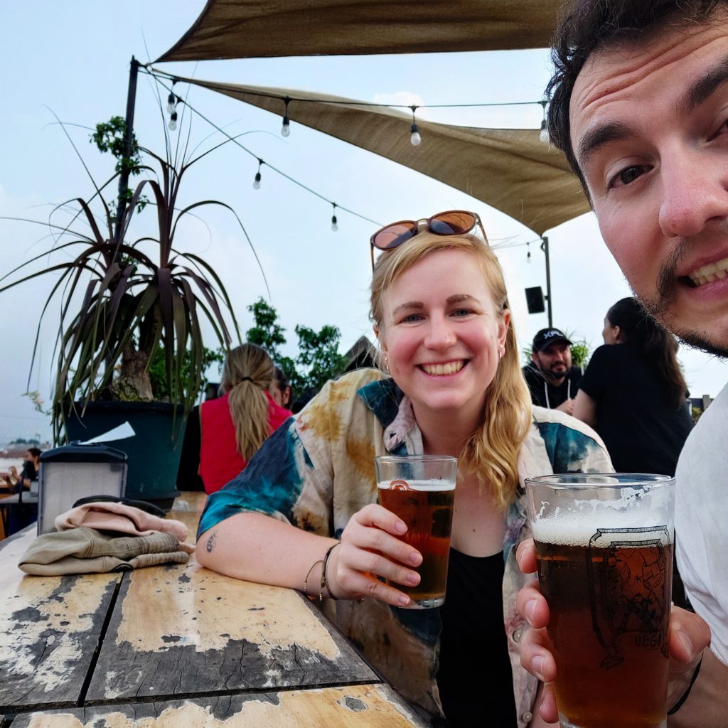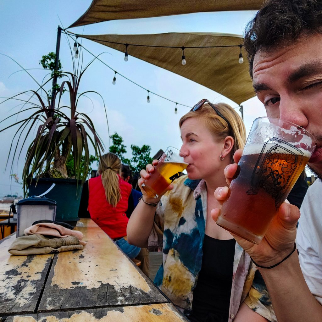 Da wir im Anschluss noch der Meinung sind, uns für die geschaffte Wanderung zu belohnen (wir haben übrigens sehr sehr schwere Beine), steuern wir eine Craft Beer Brauerei an. Erst sind wir etwas verwundert, dass nicht so viel los ist. Das ändert sich aber, als wir auf die Dachterrasse kommen. Von hier haben wir einen super Ausblick über die Stadt. Dazu legt noch ein DJ entspannte Sonntagnachmittags-Beats auf. Hier lässt es sich aushalten. Neben weiteren Touris treffen wir übrigens auf das holländische Flitterwochen-Paar, logisch, auch die beiden haben sich natürlich ein Bier verdient.