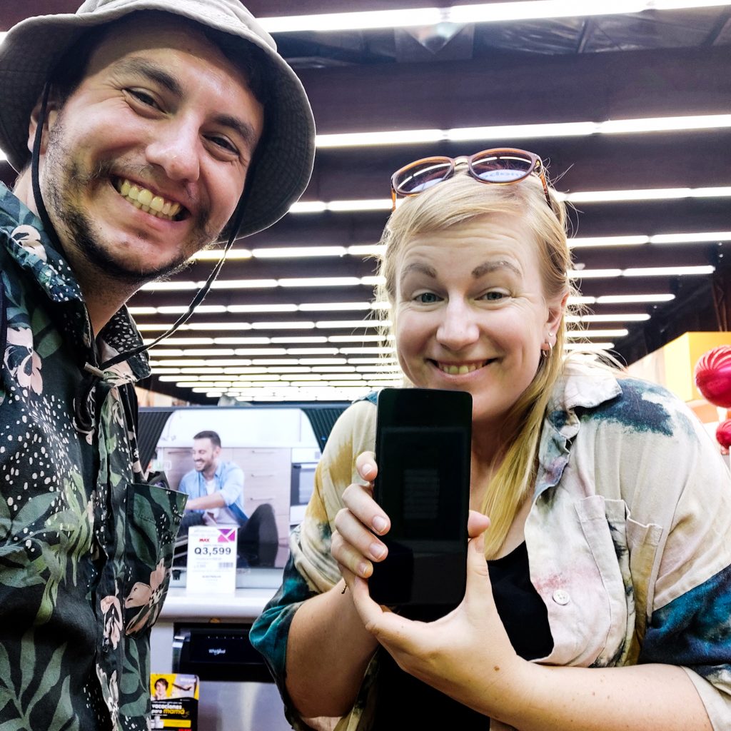 Caro will auf jeden Fall ein Handy e-Sim-fähiges Handy (das würde es uns deutlich vereinfachen in den einzelnen Ländern, an Sim-Karten zu kommen), eine nicht allzu schlechte Kamera und vor allem: KEIN TEURES GERÄT. Eigentlich möchte sie am liebsten gar kein neues Handy. Jetzt dafür Geld auszugeben, geht ihr gehörig gegen den Strich. Überhaupt ist dies ihr erstes neues Handy, was sie sich selbst zulegt. Eigentlich ist sie große Verfechterin von gebrauchten Handys, am liebsten von vertrauenswürdigen Freund:innen. Naja, das fällt jetzt flach. Da aber die Gefahr nicht zu gering ist, dass dieses heilige Gerät noch einmal entwendet wird, es herunterfällt, im Klo landet oder Caro es einfach irgendwo liegen lässt, muss eine Zwischenlösung her. Wir schauen uns um und bleiben bei Xiaomi hängen. Konsti hat eigentlich gute Erfahrung mit dem chinesischen Produzenten und es bietet schlichtweg günstige Handys an. Bei den Modellen haben wir vorab schonmal geschaut, welche e-Sim-fähig sind. Zur Sicherheit fragen wir nochmal nach. Die allgemeinen Bewertungen haben wir ebenfalls auf einschlägigen Vergleichsseiten in Erfahrung gebracht. Die Entscheidung ist schnell gefallen. Auch die der Farbe. Die ist Caro nämlich generell schon ziemlich egal. Wenn es nach dem Verkäufer ginge, dann hätte sie ein farbiges Modell ausgewählt (typisch Frau natürlich..), aber es soll einfach nur „negro“ sein. Sicherheit geht vor. Zumindest vor ungeschickten Stürzen soll das Handy geschützt sein. Eine Handyhülle gibt’s gratis dazu (Seit wann gibt’s eigentlich sowas?) und für einen Displayschutz investieren wir vorausschauend auch ein paar Mark.