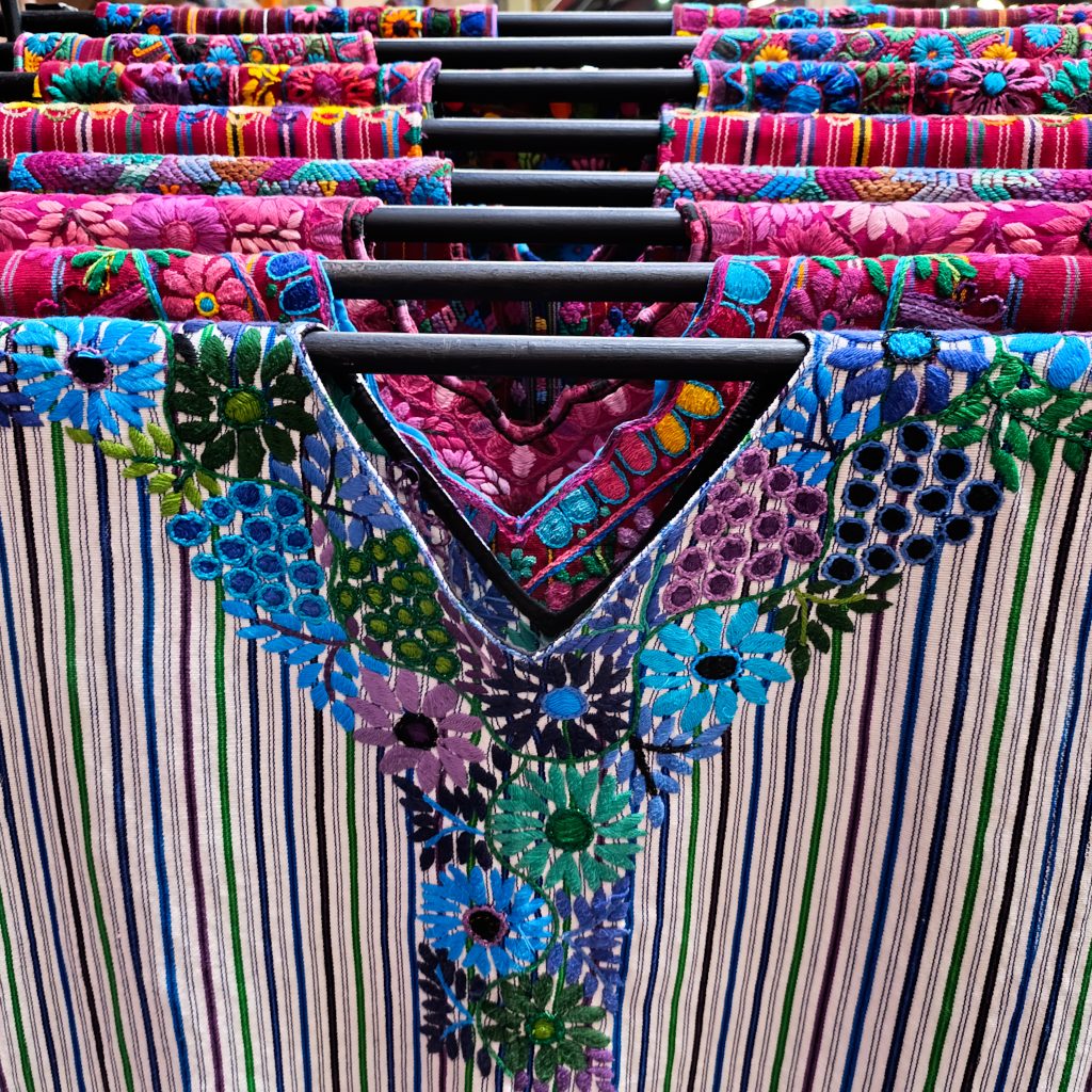 Die Güipiles sehen wir einige Tage danach auch noch einmal auf dem lokalen Markt, auf dem diese ebenfalls verkauft werden. Wir lernen allerdings, dass ein Großteil der Güipiles heutzutage gar nicht mehr unbedingt von Hand gewoben hergestellt werden, sondern viele und vor allem die günstigen, in China.