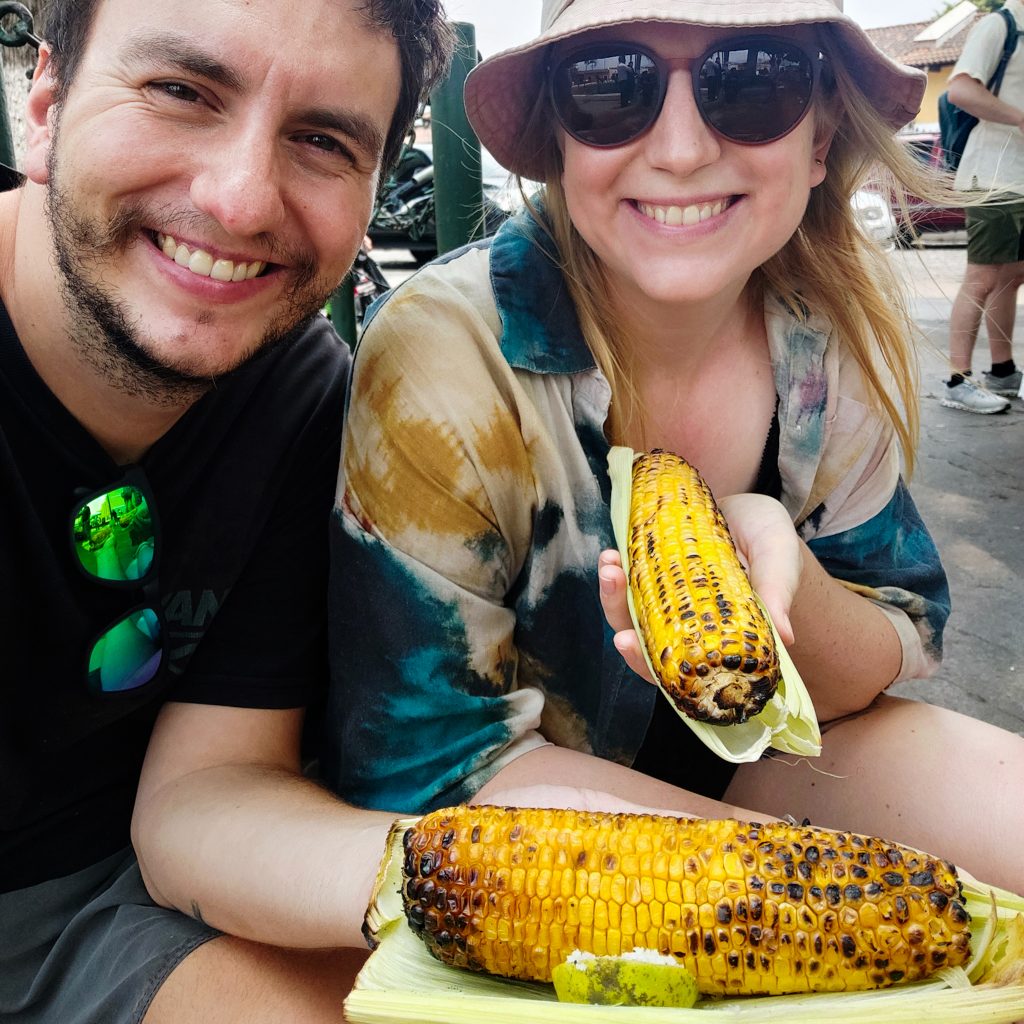 Am unserem letzten Tag machen wir tatsächlich nicht mehr viel. Wir spazieren noch einmal durch die Stadt, genießen die kleinen Ecken, süßen Geschäfte und coolen Gebäude. Am Marktplatz vor der Kirche snacken einen Maiskolben bei einer sehr alten Dame. Sie grillt die Kolben über einem kleinen Feuerchen und serviert sie uns in den alten Maisblättern. Dazu gibt es Limette und etwas Salz. So einfach und so köstlich.