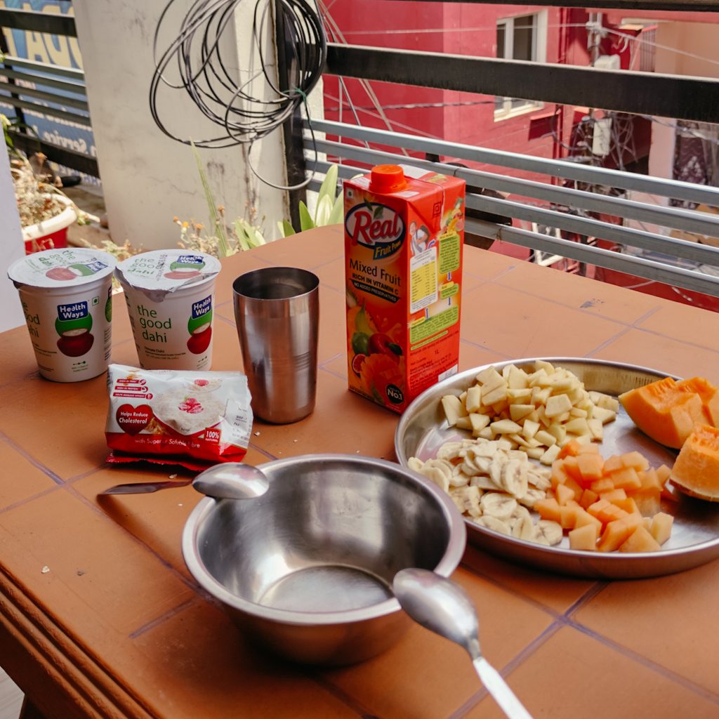 Zum Frühstück kredenzen wir uns die kommenden Morgende Kaffee und ein Müsli aus Obst, Joghurt und Haferflocken. Besuch bekommen wir an einem Morgen von einem interessierten Affen. Er taucht auf der Terrasse auf und setzt sich in 2 Meter Entfernung auf das Geländer. Ausnahmsweise nehmen wir nicht direkt reisaus, sondern warten erst einmal ab. Er bleibt ruhig sitzen, schaut uns ab und zu an und fängt dann in aller Seelenruhe an sich zu lausen.