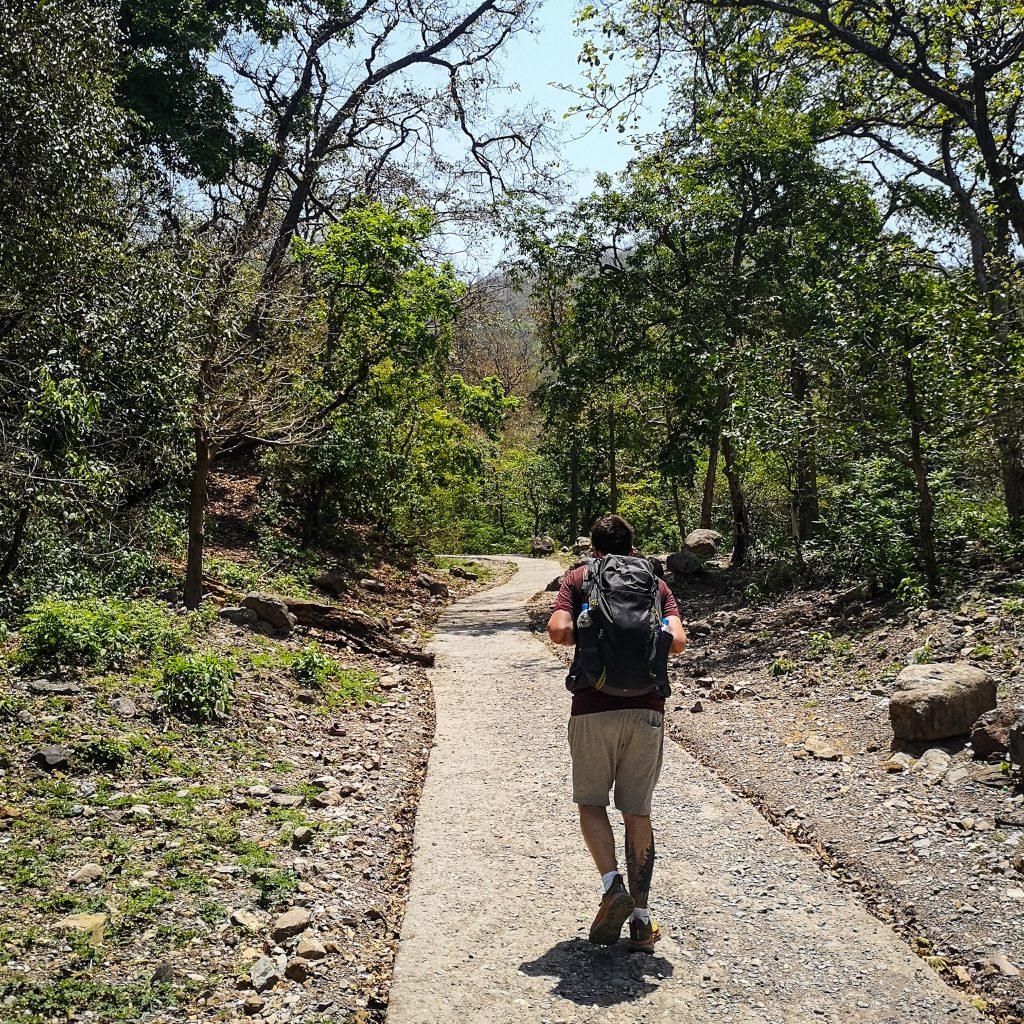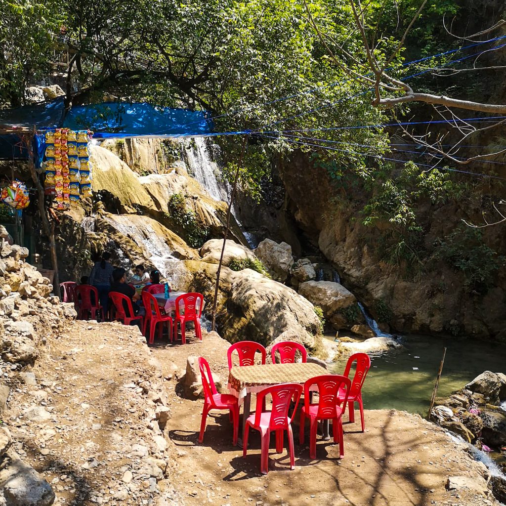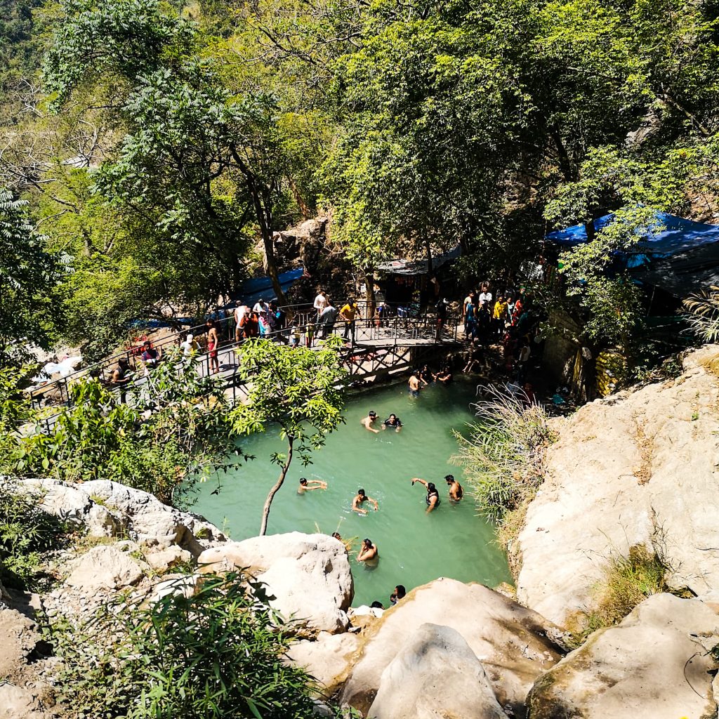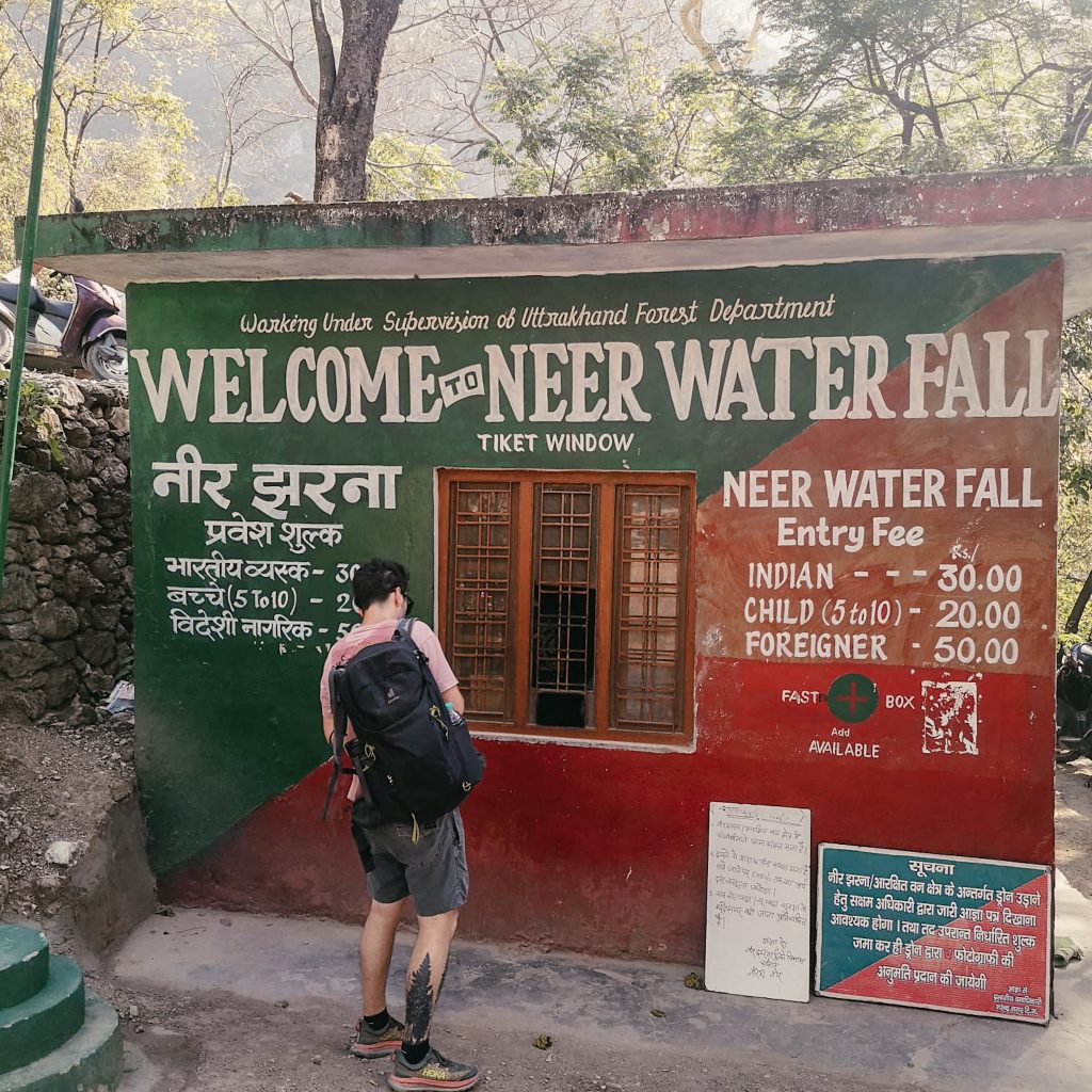 In der Nähe von Rishikesh gibt es mehrere kleine Wasserfälle, die alle zum Neer Wasserfall gehören und die die Besucher:innen zur Abkühlung in eines der vielen Wasserbecken einladen. Schon beim Durchstöbern der zahlreichen Rezensionen bei Google stellen wir fest, dass es weder ein Geheimtipp ist, noch dass der Besuch einem romantischen Bad unterm Wasserfall wie in der Herbal Essence Shampoo Werbung gleicht. Mehrere Rezensionen erfreuen sich über die Möglichkeit, Maggi direkt am Wasserfall genießen zu können. Maggi ist hier eine Art Instant-Nudelsuppe, die mit kochendem Wasser übergossen wird. Quasi das Adäquat zu unserer Freibad-Pommes mit Mayo. Da wir nun vorgewarnt sind, möchten wir uns möglichst früh auf den Weg machen. Allerdings ist die Versuchung die Schlummertaste zu betätigen am frühen Morgen sehr groß und wir machen uns erst um kurz vor 8 Uhr auf den Weg. Wir sind scheinbar die einzigen, die den Weg zum Eingang zu Fuß zurücklegen.