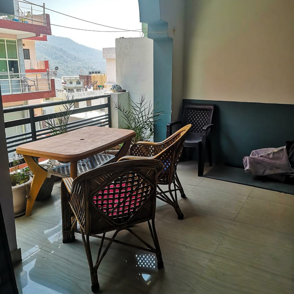 Gegen späten Nachmittag kommen wir mit dem Bus in der Nähe von Rishikesh an. Von hier müssen wir mit dem Tuktuk eine längere Strecke zurücklegen. Bei den Preisverhandlungen geben wir alles und müssen uns dafür mal wieder in Geduld üben. Unser Tuktuk fährt elektrisch, das ist super. Allerdings fährt es max. 10 km/h. Dazu kommt der ein oder andere unerklärliche Zwischenhalt, ein Umweg und ein Toilettengang des Fahrers. Immer wieder redet der Fahrer auf Hindi mit uns und immer wieder erklären wir, dass wir kein Wort verstehen. Er wiederum scheint kein Wort Englisch zu verstehen. Kein erfolgreiches Match. Dennoch kommen wir irgendwann im Ort Tapovan (zumindest unten am Berg an). Mal wieder erklimmen wir den Berg hoch zu unserer Unterkunft und halten unterwegs bereits Ausschau nach einladenden Restaurants und Cafés. Davon gibt es hier tatsächlich eine ganze Menge und uns fällt direkt ein Schild mit den magischen Wörtern „italienische Steinofenpizza“ auf.