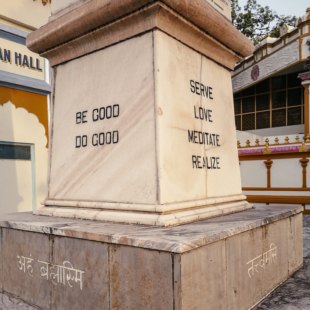 Pünktlich um 5 Uhr quälen wir uns aus dem Bett. Um 6 Uhr möchten wir beim Ashram zur morgendlichen Zeremonie sein. Schnell die lange Hose an (nur so und mit einem T-Shirt kommt man nämlich rein) und dann geht es 20 Minuten zu Fuß auf direktem Weg dorthin. Heute morgen wartet nicht, wie gestern Abend, ein Sicherheitsmann am Eingang. Etwas planlos (das könnte euch mittlerweile bekannt vorkommen) laufen wir drauf los. Das Gelände ist groß und unübersichtlich. Als wir endlich jemanden antreffen, erkundigen uns nach dem Weg und werden bergauf geschickt. Oben angekommen sind wir wieder planlos, laufen von rechts nach links und fragen den nächsten Menschen nach dem richtigen Weg. Dieser schickt uns wieder runter Richtung Straße. Entgegengesetzt der anderen Erklärung. Langsam wird die Zeit etwas knapp, wir möchten pünktlich beim Satsang und der morgendlichen Meditation sein. Wir sind skeptisch und fragen wieder nach. Der nette Herr schickt und wieder berghoch, begleitet uns ein Stück und zeigt dann auf ein Gebäude.