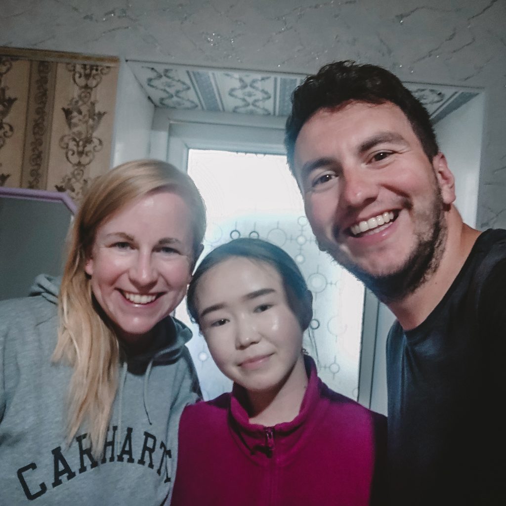 Bereits an der Marschrutka, die aus Gründen, die wir uns bis dahin noch nicht ganz erklären konnten, direkt vor unserem Guesthouse gehalten hat, werden wir von ein paar Kindern empfangen. Eines der Kinder, ein Mädchen hat hier wohl das Sagen und führt uns zum Guesthouse.