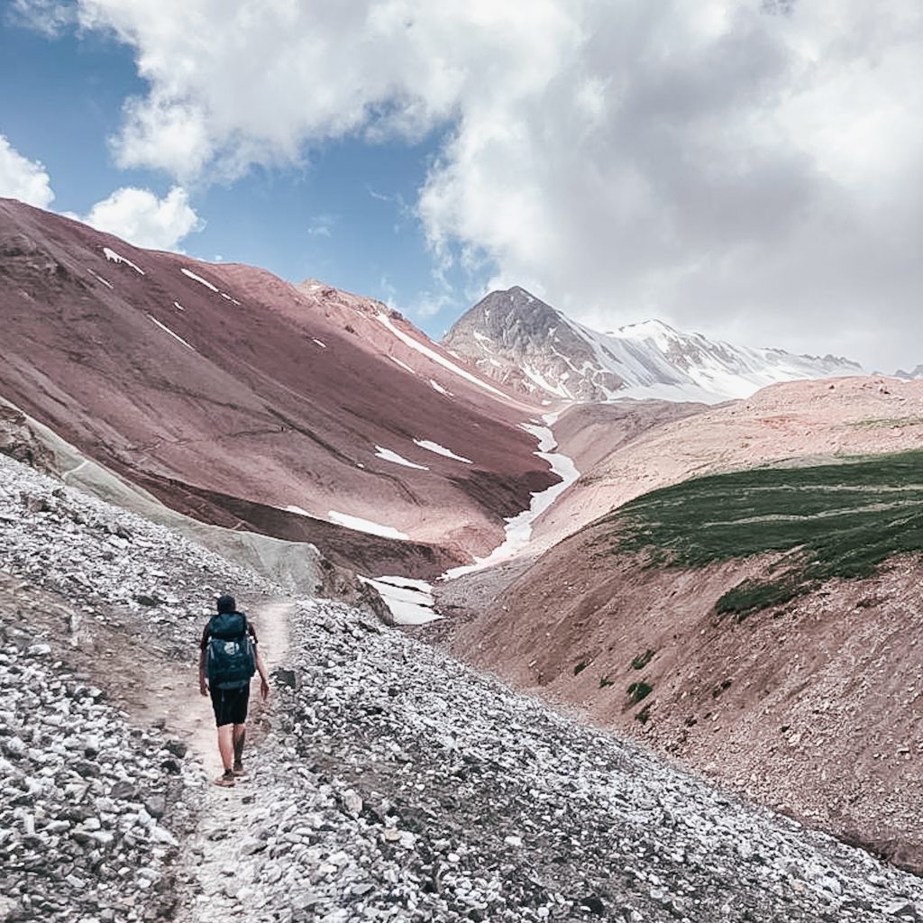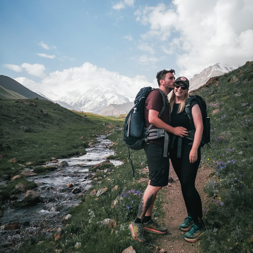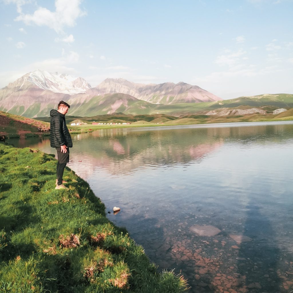Am See angekommen bricht wieder etwas Unruhe aus. Schlafen wir alle zusammen in einem Jurtcamp (Schnäppchenjagd 2.0), wer macht welche Wanderung und die Zahlung der Fahrer steht noch aus 😅 Die beiden Mädels aus Israel sind mit dem Zelt unterwegs, dürfen aber direkt beim Jurtcamp kostenfrei ihr Lager aufschlagen. Lisa, die sympathische und lustige Französin mit bestem Englisch (ohja, das gibt es!) verhandelt für uns einen Euro Rabatt pro Nacht. Während der Inder namens Vic, der bestes Spanisch spricht, sich mit seinem Zelt direkt auf den Weg macht, nachdem er sich nett von uns verabschiedet hat. Bleiben noch Marta und Victor, die beiden Spanier, die in der Nähe von Barcelone wohnen, Lisa und wir. Wir beziehen unsere Jurte, entledigen uns von etwas Gepäck und starten dann gemeinsam zu unserem heutigen Ziel: dem Traveller’s Pass. Von hier aus soll man einen tollen Ausblick auf den Lenin Peak haben.