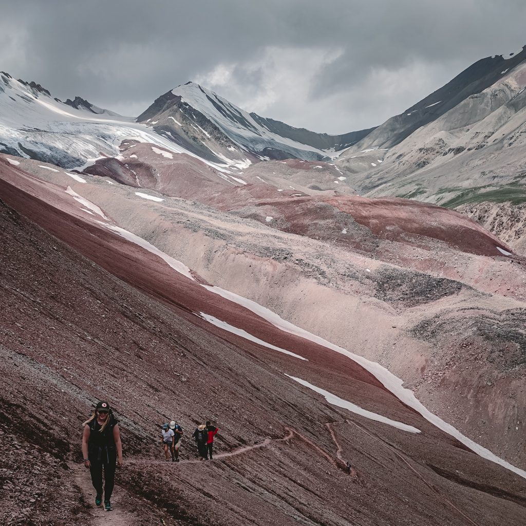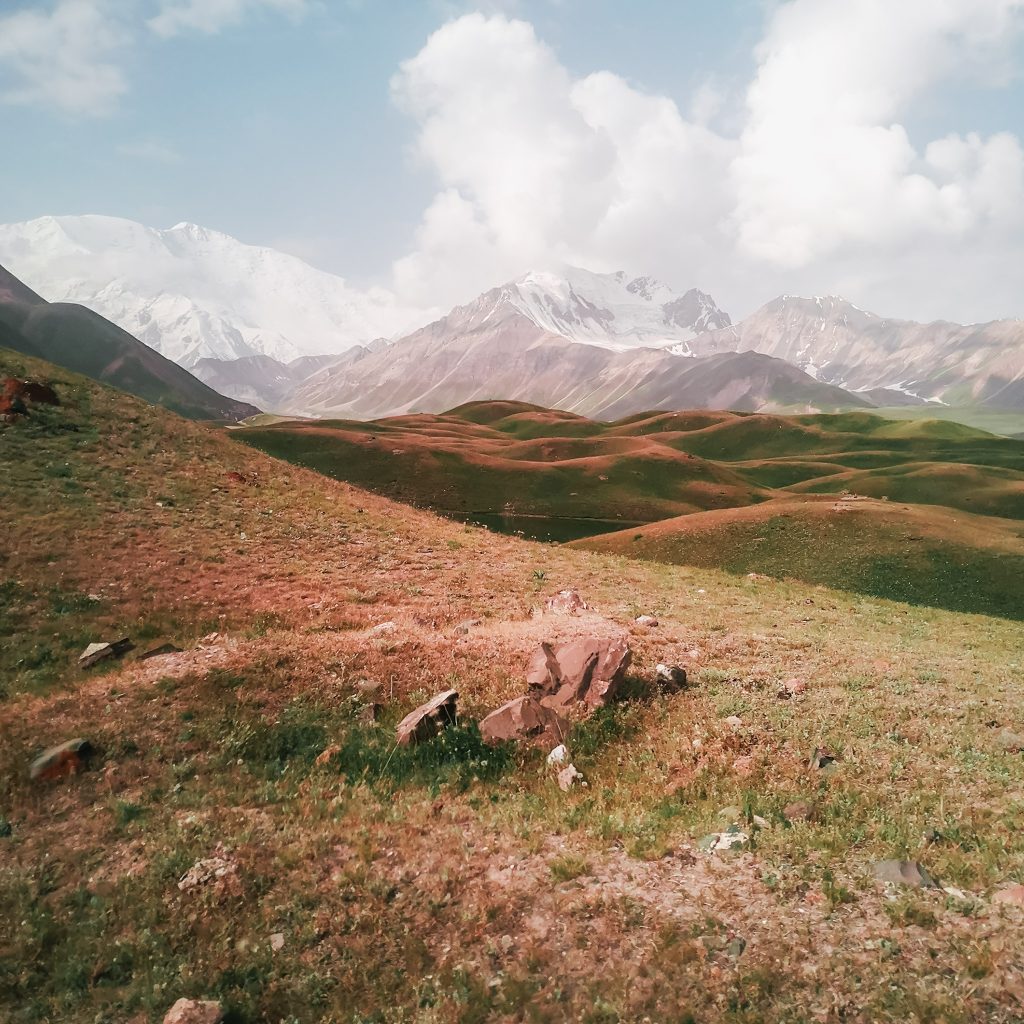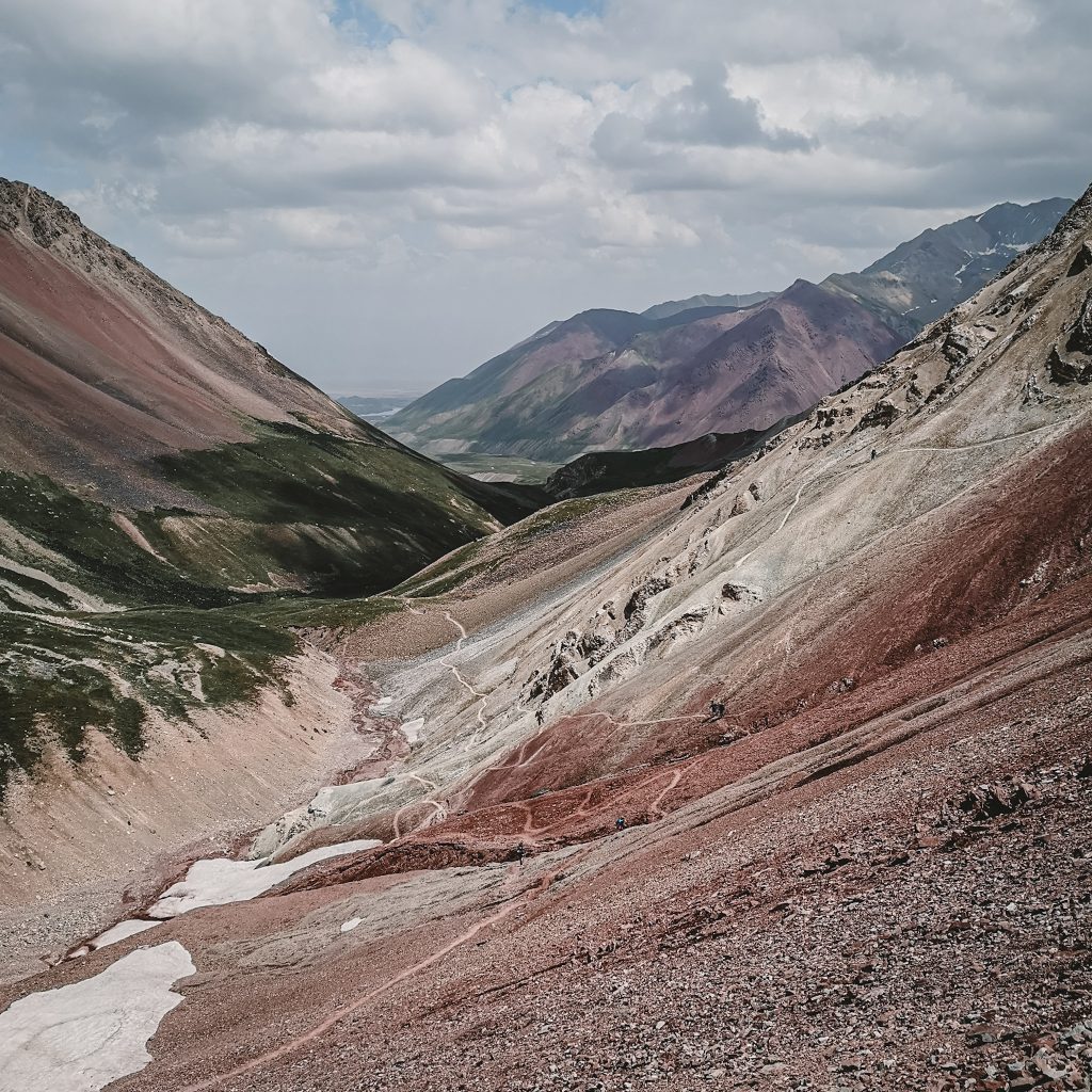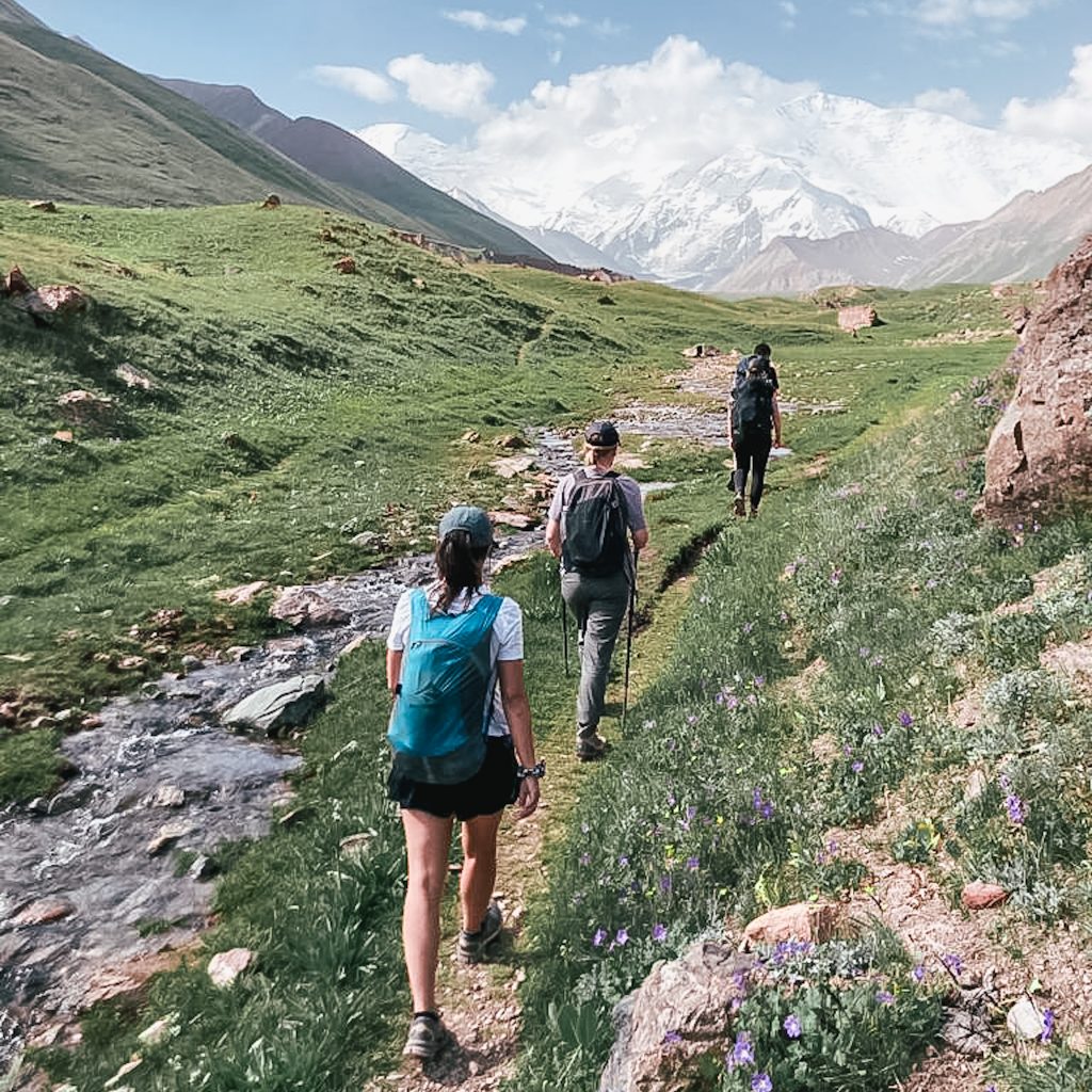 Am See angekommen bricht wieder etwas Unruhe aus. Schlafen wir alle zusammen in einem Jurtcamp (Schnäppchenjagd 2.0), wer macht welche Wanderung und die Zahlung der Fahrer steht noch aus 😅 Die beiden Mädels aus Israel sind mit dem Zelt unterwegs, dürfen aber direkt beim Jurtcamp kostenfrei ihr Lager aufschlagen. Lisa, die sympathische und lustige Französin mit bestem Englisch (ohja, das gibt es!) verhandelt für uns einen Euro Rabatt pro Nacht. Während der Inder namens Vic, der bestes Spanisch spricht, sich mit seinem Zelt direkt auf den Weg macht, nachdem er sich nett von uns verabschiedet hat. Bleiben noch Marta und Victor, die beiden Spanier, die in der Nähe von Barcelone wohnen, Lisa und wir. Wir beziehen unsere Jurte, entledigen uns von etwas Gepäck und starten dann gemeinsam zu unserem heutigen Ziel: dem Traveller’s Pass. Von hier aus soll man einen tollen Ausblick auf den Lenin Peak haben.