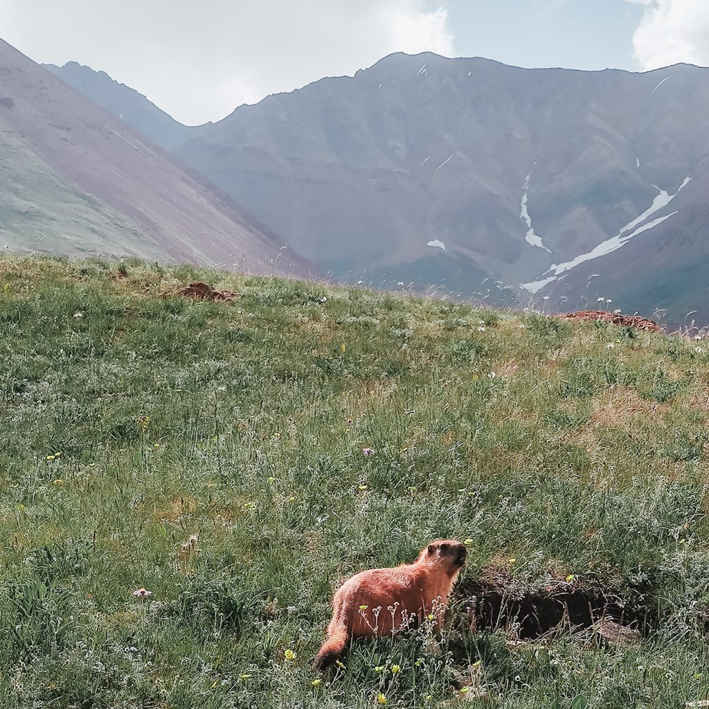 Schon auf dem Weg zum See haben wir aus dem Auto ein paar gesehen, aber jetzt scheinen sich überall aus ihren Löchern zu kommen: die flauschigen, dicken, rothaarigen Murmeltiere. Zum Teil sind sie so nah, dass wir sie richtig gut beobachten können. Im nächsten Moment tauchen sie in ihre Löcher ab oder (was noch viel niedlicher ist) sie setzen zum Sprint an. Das sieht mit ihren kugeligen Körpern sehr unkontrolliert und wenig athletisch aus. Wir sind alle ganz aus dem Häuschen und freuen uns sehr über die süßen Wegbegleiter.