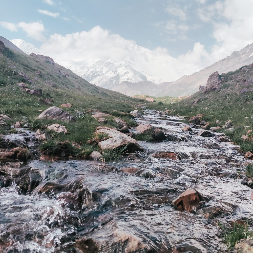 Wir laufen durch das Tal und kommen nach ca. einer Stunde bereits am Basecamp des Lenin Peaks an. Das Lager sieht relativ unspektakulär aus, liegt aber bereits auf 3.700 m. Am Ende des Tals geht es bergauf. Wir merken schnell, dass die Luft hier etwas dünner und die Anstrengung größer ist als normalerweise.