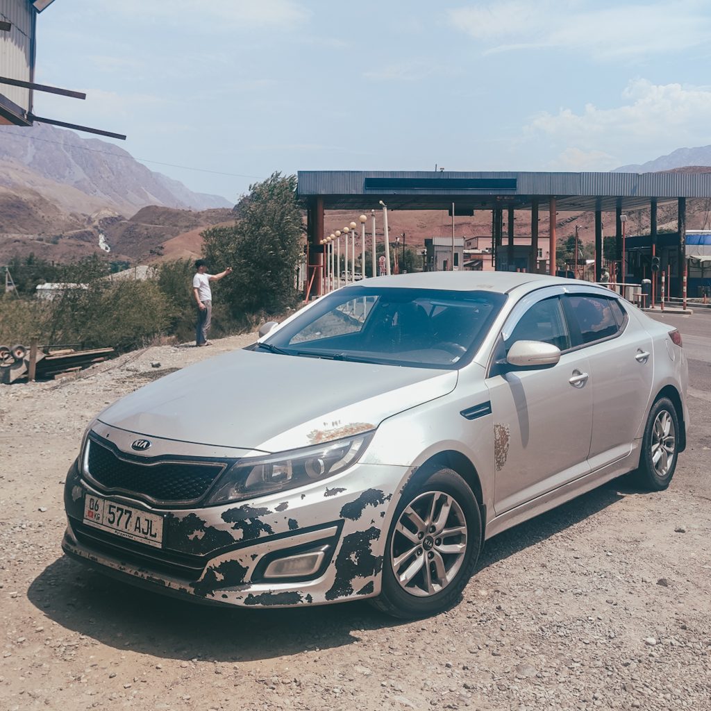 Von Bischkek nach Osch fahren leider keine Marschrutkas, also öffentliche Verkehrsmittel der Regierung. Warum? Die einen sagen aufgrund eines Tunnels, der eher nicht vom TÜV abgenommen werden würde, die anderen, weil der Weg zu lang und gefährlich sei. Letztendlich wissen wir es nicht. Was wir aber wissen, ist, das die Fahrt 12-14 Stunden dauern soll und das man sich ein Shared Taxi suchen muss. Das sind private Fahrer, die mit PKWs oder Transportern die Strecke bewältigen. Sie fahren los, wenn das Fahrzeug voll ist, der Preis ist verhandelbar. Yeah, sowas lieben wir ja. Angekommen am Osch Bazar, sind wir allerdings erstaunt, wie groß das Angebot ist. Wir werden direkt angesprochen, gehen aber erstmal weiter. Wir wollen möglichst zeitnah starten und sind daher auf der Suche nach einem fast vollen Transporter. Kurz vor Abschluss der Verhandlungen mit einem Fahrer, den wir schon gut heruntergehandelt haben, kommt ein neuer Typ hinzu. Er bietet uns eine sofortige Abfahrt für 5 Euro pro Person mehr im PKW. Hm, verlockend. Das sind uns die 5 Euro tatsächlich wert. Da wissen wir noch nicht, dass auch wir erst fahren, wenn das Auto voll ist. „10 Minuten“ verspricht der Hauptverantwortliche uns. Na gut, dann nutzen wir die Zeit zum Frühstücken. Aus 10 Minuten werden 20, dann 30. Aber dann haben sich ein weiterer Mann und ein junges Mädchen gefunden, die uns begleiten. Dann geht sie auch schon los die wilde Fahrt. Immerhin hat das Auto eine Klimaanlage.