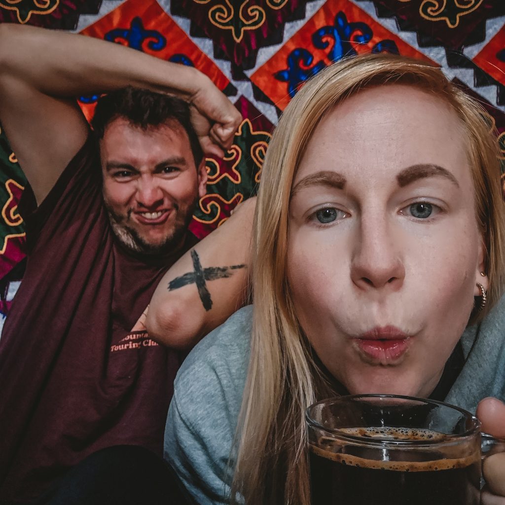 Als wir Ankommen finden wir uns nochmal mit den anderen Tourist:innen zusammen. Von Sary Moghul müssen wir am folgenden Tag eine nicht ganz kostengünstige Fahrt mit einem 4×4 Wagen zum Tulpar See nehmen. Von dort aus beginnen die Wanderungen. Je mehr Leute wir zum Teilen des Taxis finden, desto besser. Wir tauschen Nummern aus und Konsti wird mit der Eröffnung einer WhatsApp Gruppe beauftragt, schließlich sind wir ja die Deutschen und die Deutschen lieben Organisation. Damit liegen die anderen nicht ganz falsch. Nach ein bisschen hin und her am Abend, kümmern wir uns um die Buchung von zwei Autos über unser Hostel. Um 7.30 Uhr sammeln diese uns ein, ob die achtköpfige Reisegruppe Chaos das schafft? Wir sind nämlich in unterschiedlichen Hostels und Frühstück gibt’s überall erst ab 7 Uhr. Aber was macht man nicht alles für ein Schnäppchen.