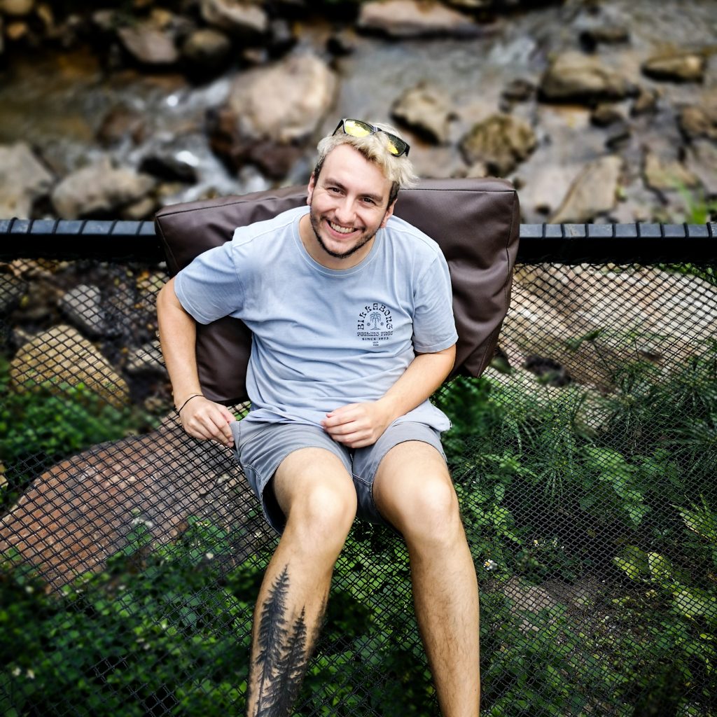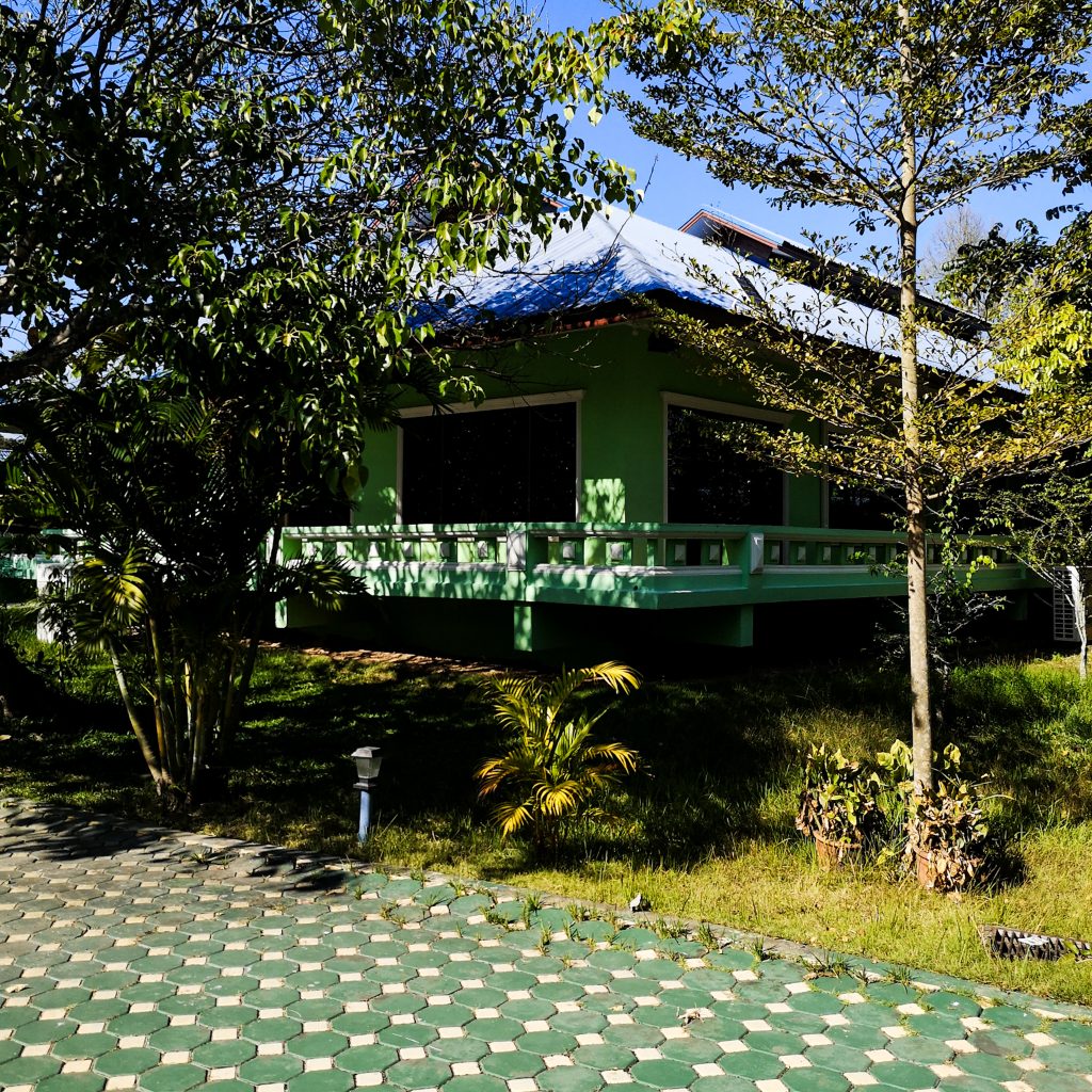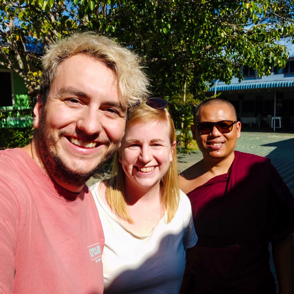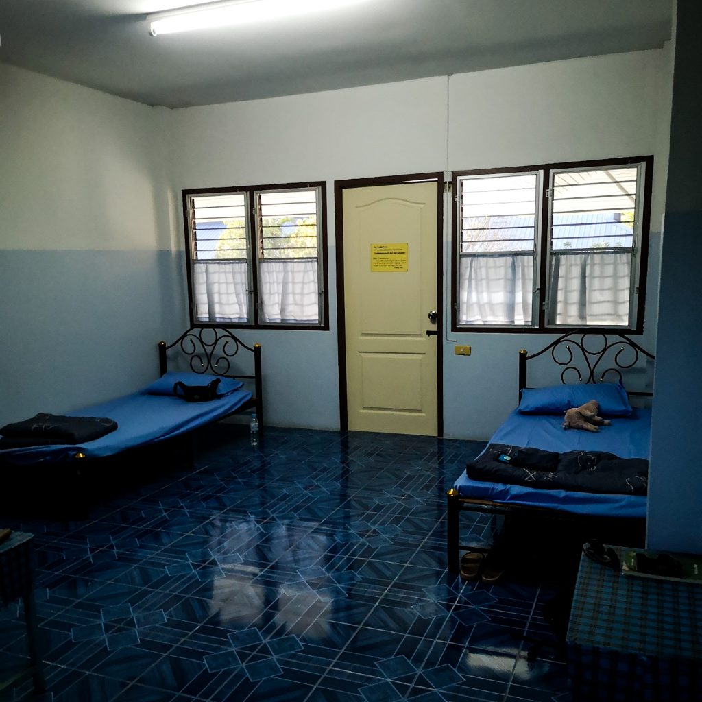 Als wir ankommen, versammeln wir uns und bekommen eine kleine Einführung. Es gibt Doppelzimmer, Geschlechter werden aber getrennt. Wie praktisch, dass wir schnell unsere Zimmergenoss:innen gefunden haben. Die erste Nacht, die wir seit Beginn der Reise nicht in einem Zimmer verbringen. Die Zimmer sind einfach eingerichtet, aber jedes Zimmer verfügt über ein eigenes Bad. Ansonsten gibt es auf dem Gelände noch einen Speisesaal zum Essen, eine Meditationshalle und ein weitläufiges Gelände mit vielen Bäumen. Wir beziehen unser Zimmer und finden uns danach unten wieder zusammen, wir kommen gerade etwas mehr in Kontakt mit den anderen Leuten, da ertönt schon der Gong und wir finden uns in der Meditationshalle wieder. Vorne stehen viele Buddha Figuren, im Rest der Halle sind Sitzkissen verteilt. Wir nehmen Platz. KK begrüßt uns ein weiteres Mal und offenbart uns eine Regel, mit der wir für die kommenden 24 Stunden so gar nicht gerechnet haben: Wir befinden uns fortan in einem Schweige-Retreat – quatschen, lästern, flüstern, austauschen, unterhalten – alles „verboten“. Wir sollen uns vollkommen auf uns und die Meditation konzentrieren. Ohje, das dürfte dann tatsächlich eine Herausforderung für uns werden. Zu zweit wäre das ja schon eine schwierige Angelegenheit, aber zu viert potenziert sich diese Herausforderung für uns. Ob wir das überhaupt durchhalten?