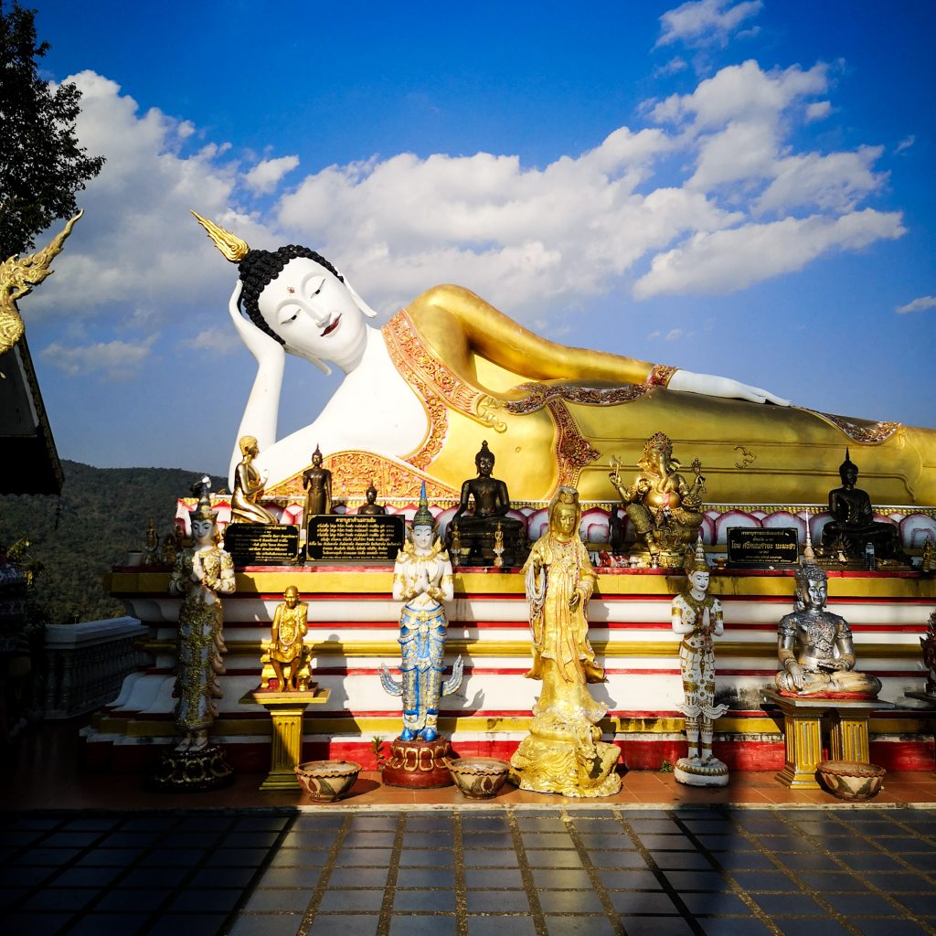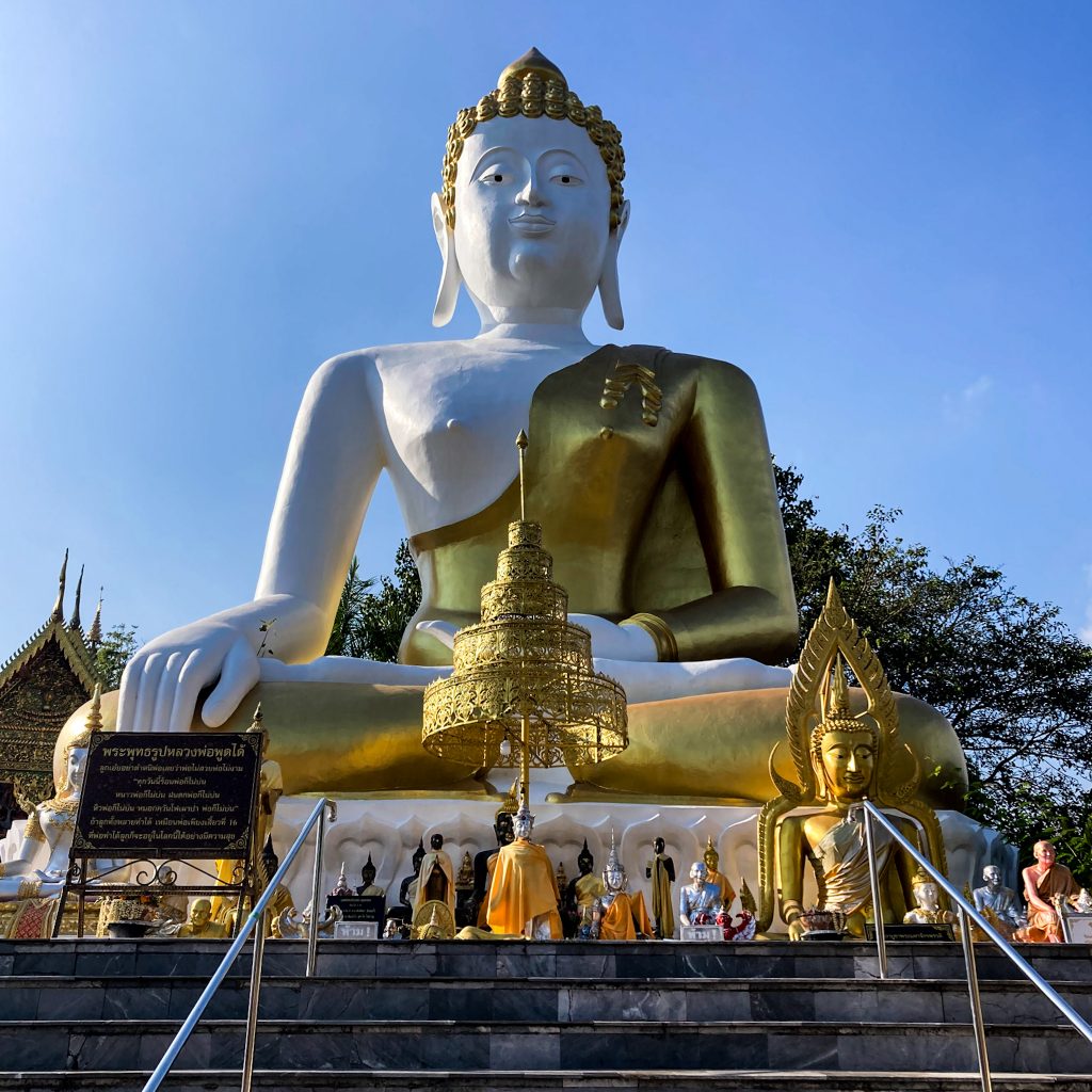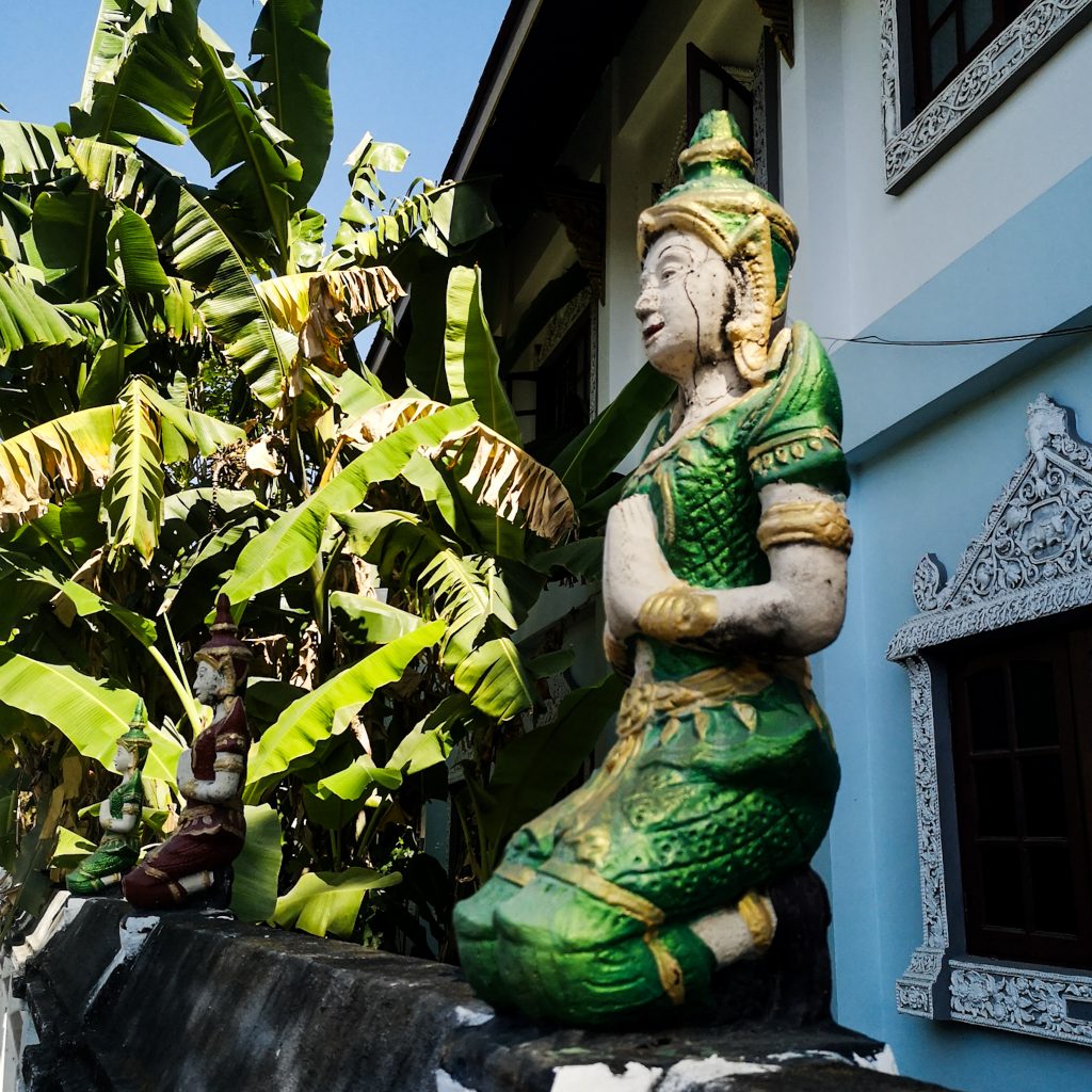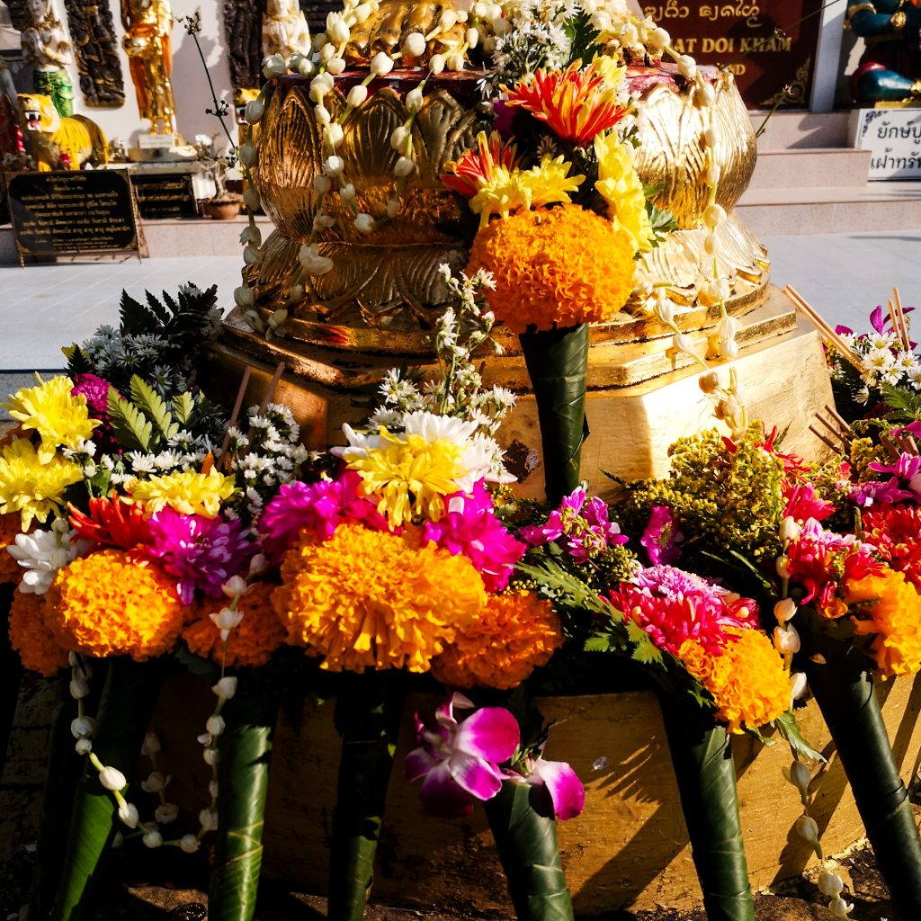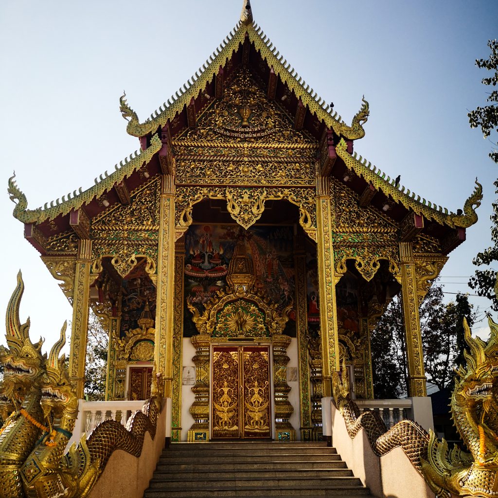 Chiang Mai ist übrigens die größte Stadt der Nordregion und hat in ihren offiziellen Grenzen rund 127.400 Einwohner:innen. Aufgrund der landschaftlich schönen Lage und der verbliebenen buddhistischen Klöster im Lanna-Stil wird die Stadt auch „Rose des Nordens“ genannt. Der Altstadtkern ist ein ca. 2×2 km großes Viereck, das von einer antiken Stadtmauer und einem parallel dazu verlaufenden Wassergraben umschlossen ist. Es gibt ungefähr 200 buddhistische Tempel, der Großteil liegt in der Altstadt. Wir müssen natürlich ehrlich sein: Auch hier wimmelt es von Tourist:innen. Neben dem Tourismus zählt vor allem das thailändische Kunsthandwerk, insbesondere die Holzverarbeitung, Textilherstellung und die Bearbeitung von Jadeschmuck zu den wichtigen Zweigen der Wirtschaft.