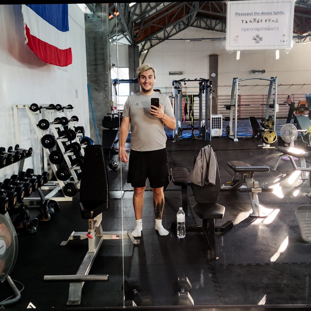 Wir starten mit einer Runde Sport im Fitnessstudio. Davon gibt es in Chiang Mai, ganz im Gegenteil zu Muay Thai Studios, gar nicht mal so viele. Wir finden eine Kombi und statten dem „Studio“ einen Besuch ab. Das Studio ist vielmehr eine nicht klimatisierte Freifläche mit veralteten Geräten. Irgendwie ganz cool. Viel los ist natürlich auch nicht. Es scheint eher, als wenn sich hier ein paar Touris oder Expats austoben. Mit 100 Baht (2,57 €) Tageseintritt aber auf jeden Fall ein gutes Preis- Leistungsverhältnis und für uns sowieso vollkommen ausreichend.