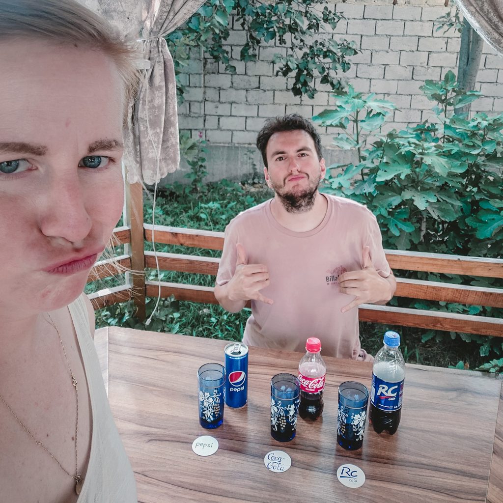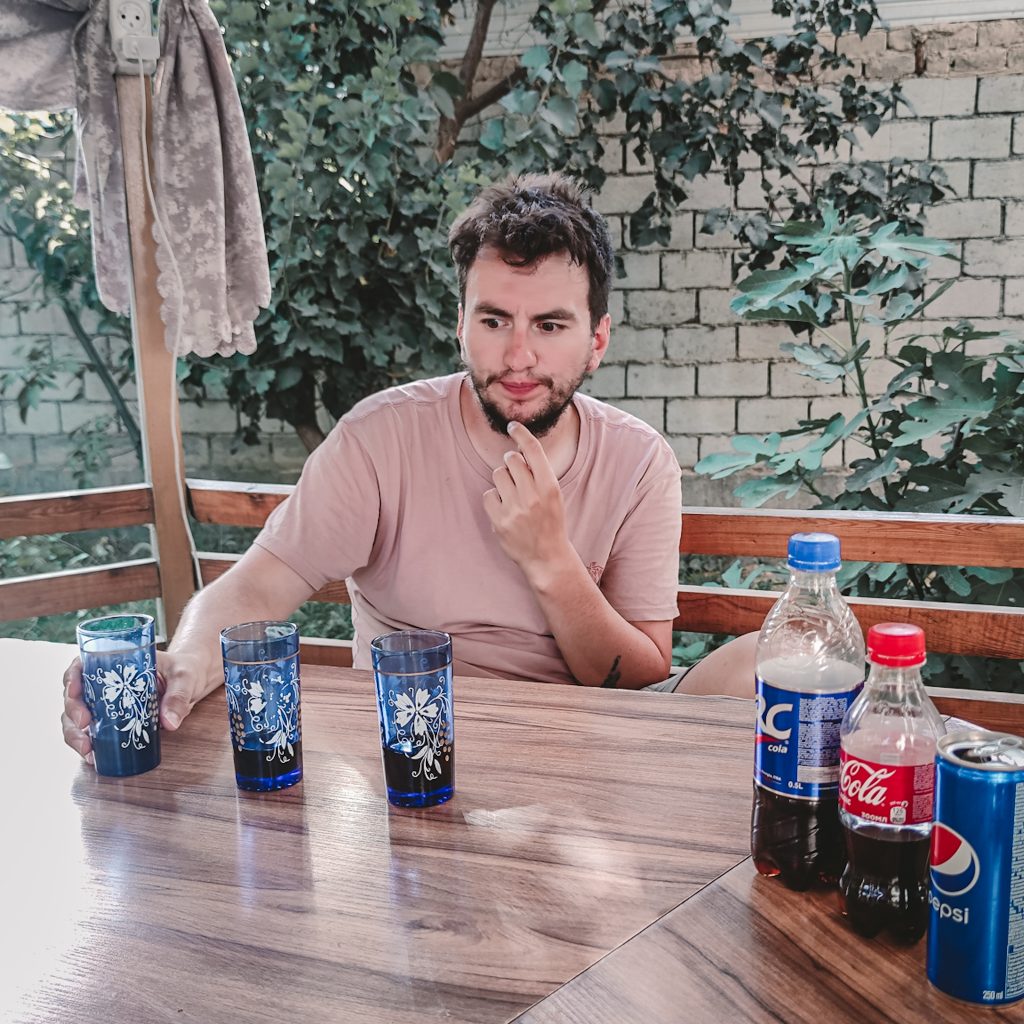 Wenn ihr euch fragt, womit wir uns sonst so unsere Zeit vertreiben: Heute mit einem Cola Tasting. Genau, richtig gehört. Das ungesunde, viel zu süße Kaltgetränk gibt es hier nämlich en masse (neben sehr sehr viel Energy Drink der Marke Gorilla). In Tadschikistan wird in erster Linie RC Cola getrunken, die entgegen unserer Erwartungen nicht aus dem Land selbst, sondern auch aus den USA kommt. Wir können es uns daher nicht nehmen lassen und testen die uns vollkommen unbekannte Marke, die optisch eher an Freeway Cola vom Discounter erinnert. Der Geschmack ist aber gar nicht so schlecht. Schnell ist die Idee eines Blindtastings geboren. Wir gehen also in den Supermarkt und verlassen diesen mit unseren drei Test-Kandidaten: