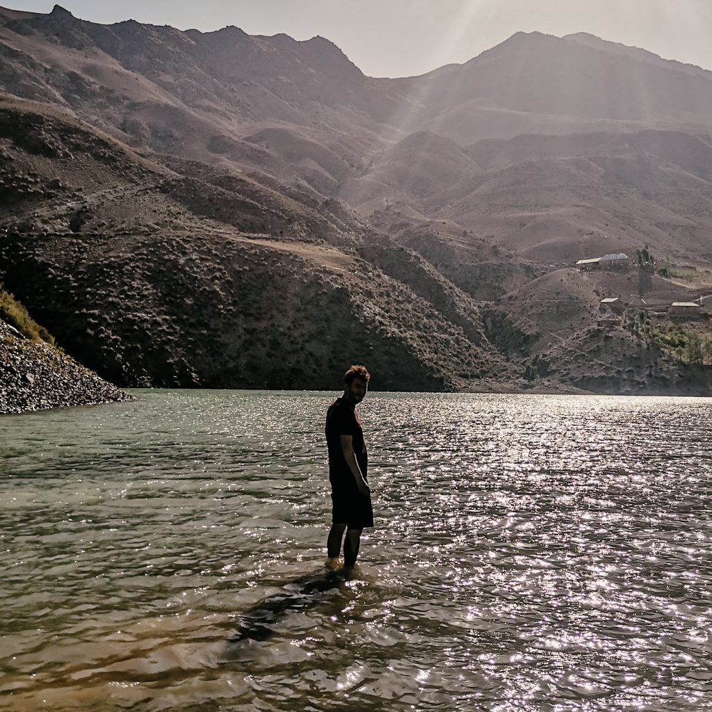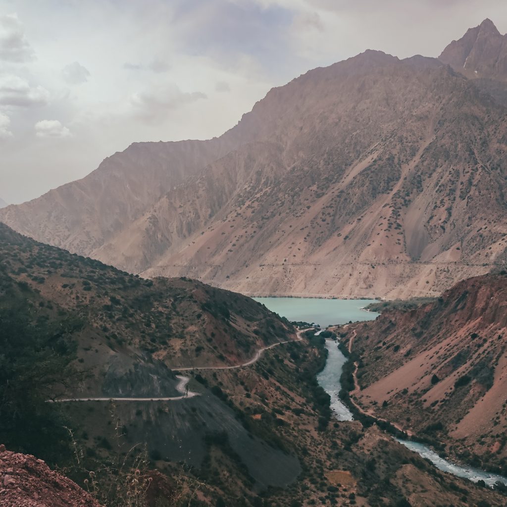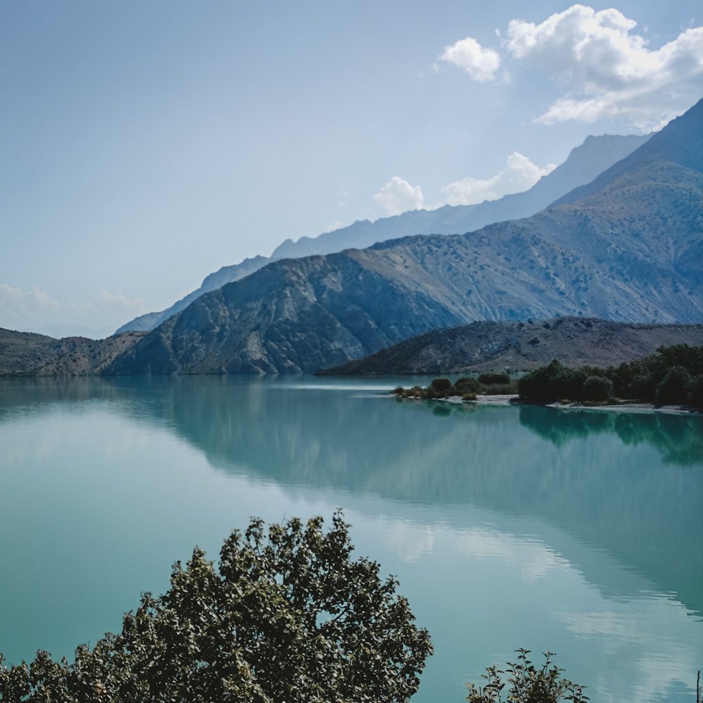 In den Sommermonaten komme viele einheimische Tourist:innen aus Duschanbe zum See, um hier am Wochenende oder in Ihrem Urlaub zu entspannen. Auch der Präsident ist hier nicht nur mehrfach auf überdimensionalen Werbetafeln zu sehen. Er hat ein eigenes Ferienhaus am anderen Ende des Sees, das entweder mit einem Hubschrauber oder mit einem Boot zu erreichen ist. Ob es deshalb auch Stromtrassen bis oben an den See und vergleichsweise gutes Internet gibt?!