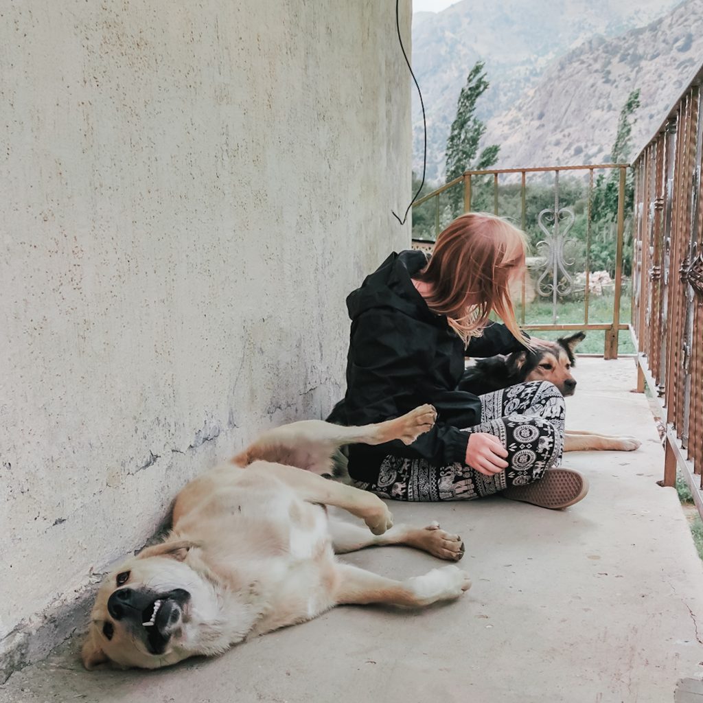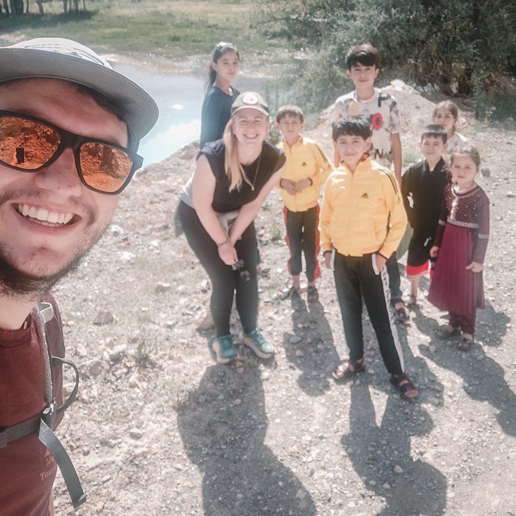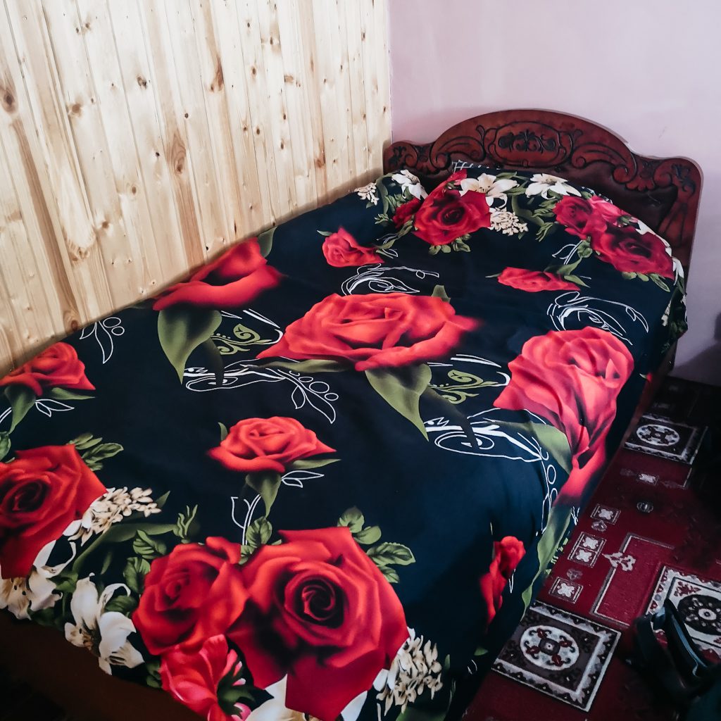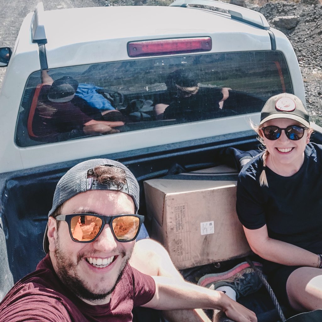 Wir freuen uns sehr, dass es so schnell geklappt hat und genießen die frische und zugegebenermaßen etwas staubige Brise auf der Ladefläche. Am See angekommen sind wir gerade dabei unsere Rucksäcke abzuladen, als der Fahrer uns anbietet, uns bis Sarvoda den ganzen Berg mit runterzunehmen. Cool, da freuen wir uns noch mehr. Wir machen es uns so bequem wie es geht, es wird noch ein Schaschlik-Grill inkl. Equipment aufgeladen und dann geht die wilde Fahrt weiter. Wir werden ordentlich durchgeschüttelt, aber das macht uns gar nichts. Wir freuen uns über die Erfahrung, die Fahrt und genießen die Aussicht auf die Berge. In Sarvoda angekommen, verabschieden wir uns vom Fahrer. Als Konsti ihm Geld anbieten möchte, winkt er freundlich ab.