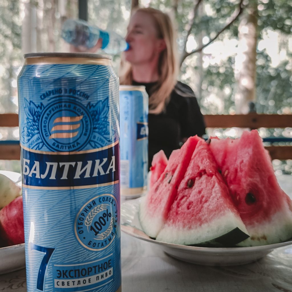 Als wir endlich ankommen, haben wir sowohl schwere Beine als auch lange Arme vom Hund tragen. Aber keine Sorge, als wir das Grundstück betreten, ist er wohlauf, läuft durch den Garten und macht dann ein langes Schläfchen. Wir lehnen heute höflich den Tee ab und bestellen uns dafür Bier und Wassermelone. Die Wassermelone ist zwar kälter als das Bier, aber die Kombi ist die perfekte Belohnung für den heutigen Tag 🍻🍉