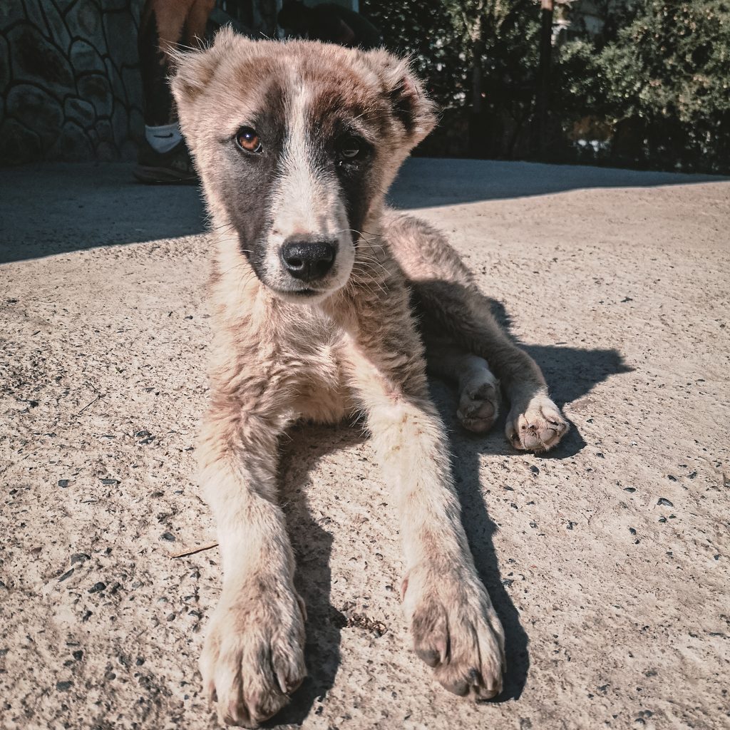 Am sechsten See laufen wir direkt zur Familie. Der kleine Hund liegt entspannt unter dem Auto im Schatten. Als er uns sieht kommt er erst kurz freudig auf uns zugelaufen und verkriecht sich dann wieder schnell unter dem Auto zu seinem Knochen. Er macht keinerlei Anstalten, den Heimweg mit uns anzutreten. Da haben wir uns echt etwas eingebrockt. Als er fertig gespeist hat, locken wir ihn schließlich mithilfe der Familie raus und Maxim schnappt ihn sich. Wir tragen ihn ein Stück, damit er nicht wieder zurück läuft. Als wir ihn dann absetzen, bewegt er sich kein Stück. Er ist einfach müde und hat sein heutiges Pensum an Energie schon lange verbraucht. Wir haben keine bessere Idee als ihn zu tragen. Der Heimweg ist noch recht lang, aber anders scheint es nicht zu gehen. Caro fängt an ihn zu tragen, irgendwann übernimmt Konsti.