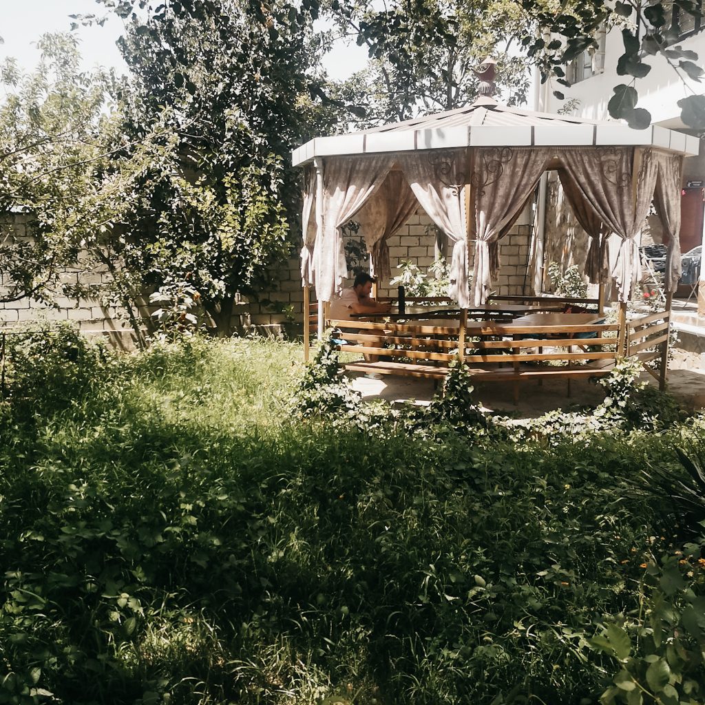 Wir lernen Maxim kennen, einen alleinreisenden Franzosen, der morgen das gleiche Ziel hat wie wir. Er ist Lehrer und momentan in den Sommerferien unterwegs. Und dann sichten wir noch Jo, die Taiwanesin, die in Pandschakent im gleichen Hostel wie wir war. Sie ist Tättowiererin in Taipeh. Jetzt wird ein Schuh draus. Schon am Vortrag sind uns ihre coolem Tattoos positiv aufgefallen. Direkt schauen wir uns das Insta Profil ihres Studios an. Denn wer weiß, nach Taiwan wollen wir ja sowieso, warum dann nicht vielleicht auch ein Tattoo stechen lassen? Wir essen gemeinsam zu Abend und vergrößern damit unsere Reisegruppe für den nächsten Tag.