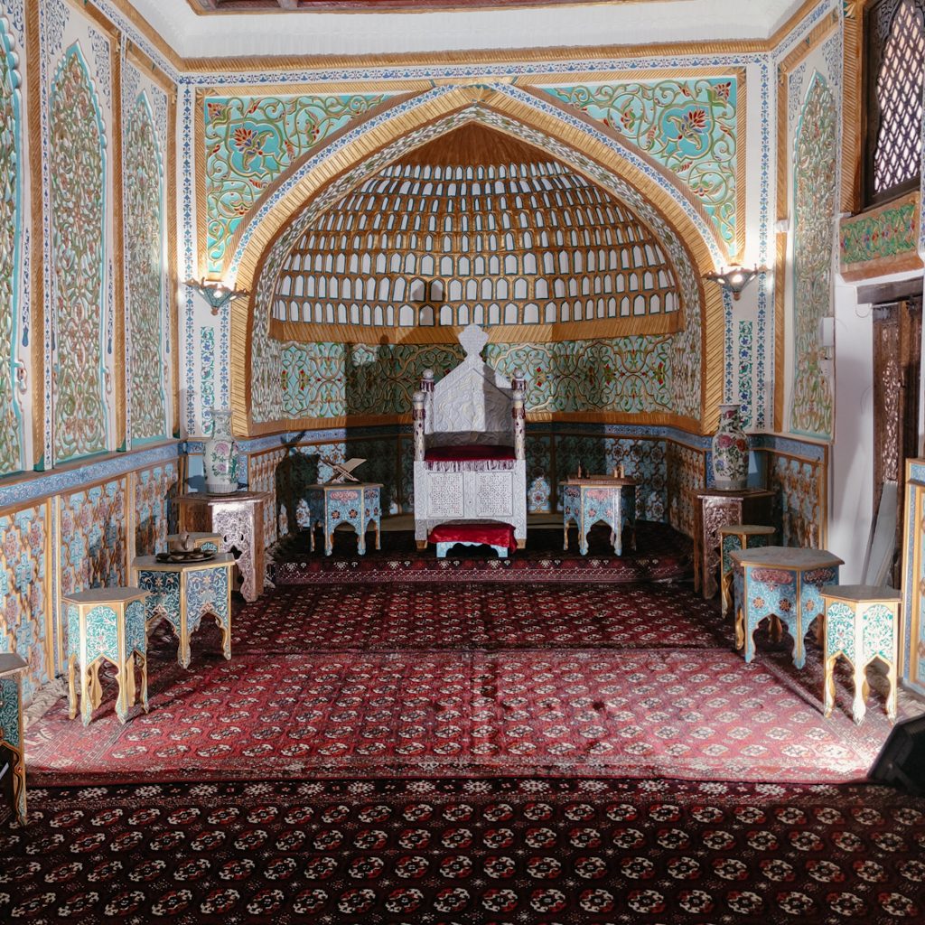 Am nächsten Morgen starten wir nach dem Frühstück die Erkundung der Stadt mit einem Ticket für das „Freilichtmuseum“. Damit können wir in so ziemlich alle Moscheen, Medressen, Mausoleen und Paläste. Besonders die Ausstellungen sind mit ihren gruselig ausgestopften Tieren, Plastik-Obst und -Gemüse und Gesteinen zum Teil etwas gewöhnungsbedürftig und alles andere als modern. Besonders ist allerdings die Juma Moschee und das Wahrzeichen der Stadt – das Kalta Minor.