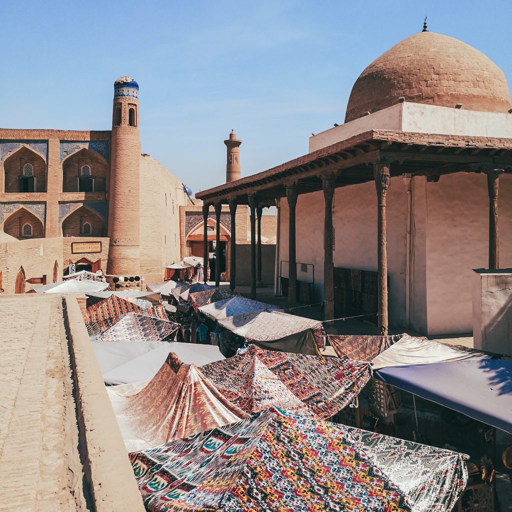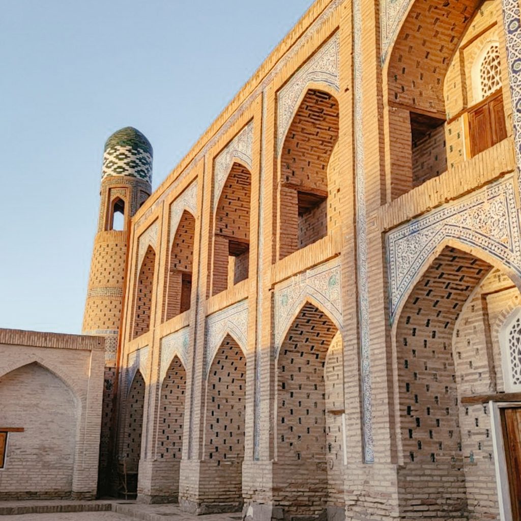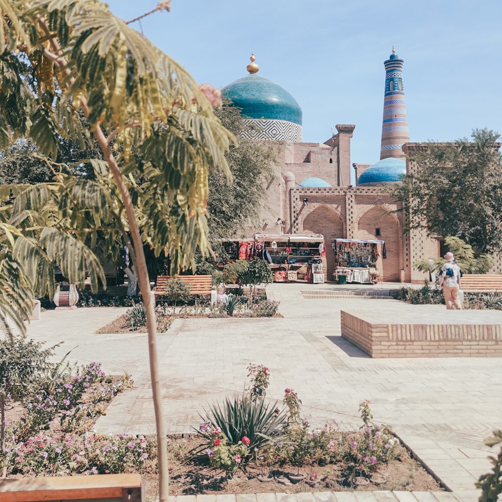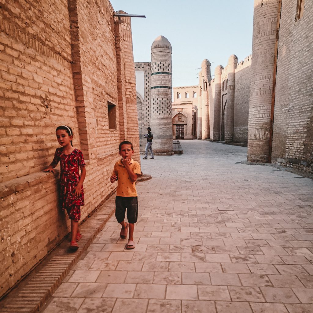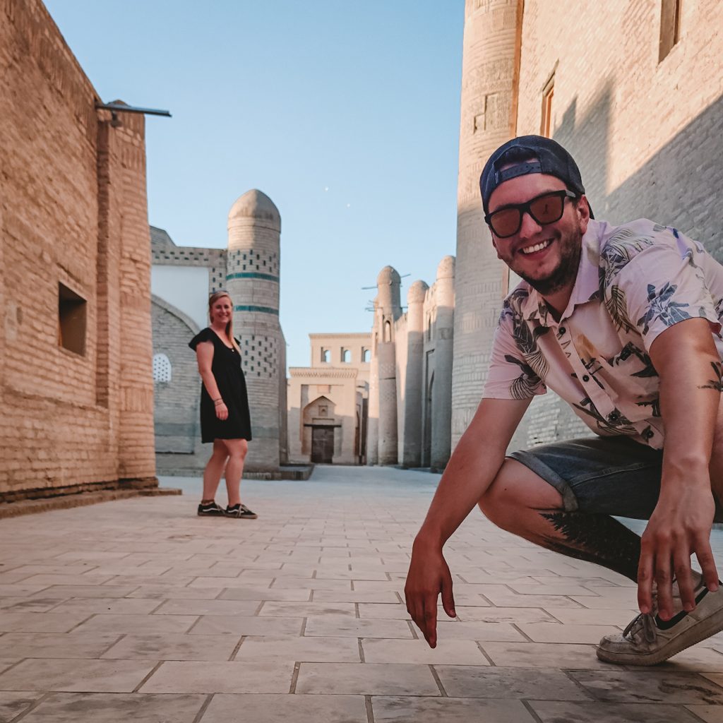 Dann geht es aber wirklich los. Hut und Sonnenbrille auf und los geht die Erkundungstour. Wir müssen nicht weit gehen, wir befinden uns inmitten des größten Freilichtmuseums Usbekistans. In der kompletten Altstadt reihen sich mal wieder die 3Ms aneinander: Moscheen, Mausoleen und Medressen soweit das Auge reicht.