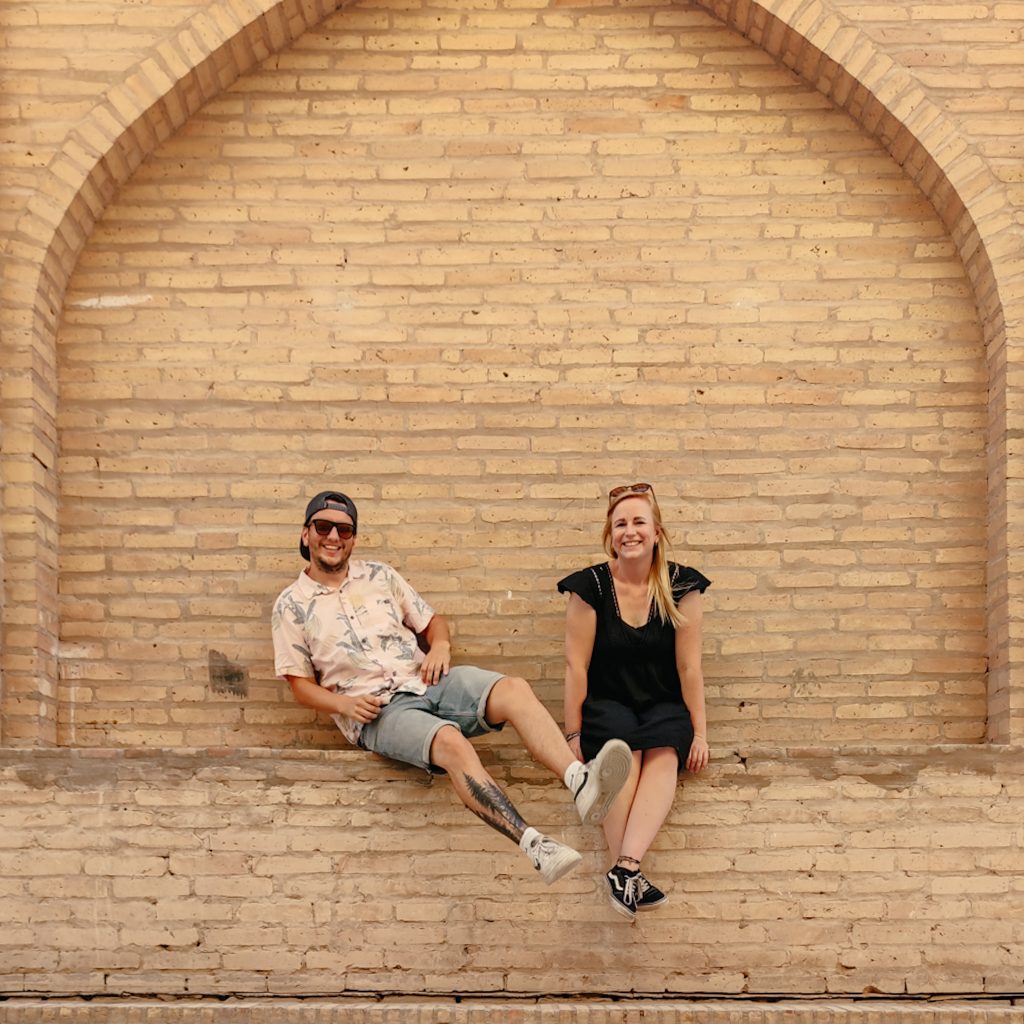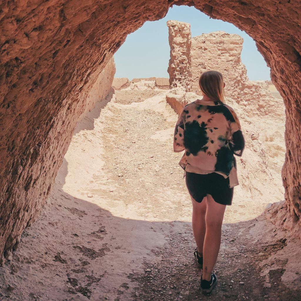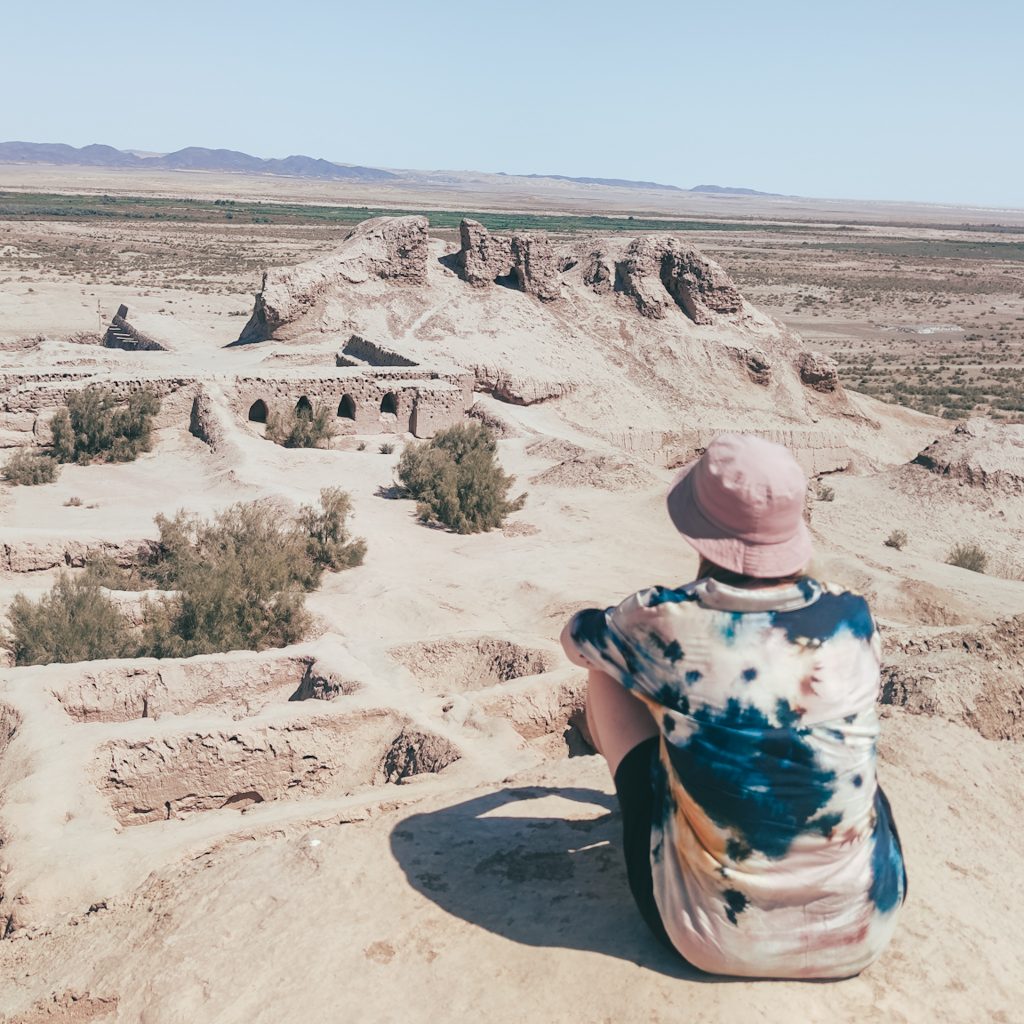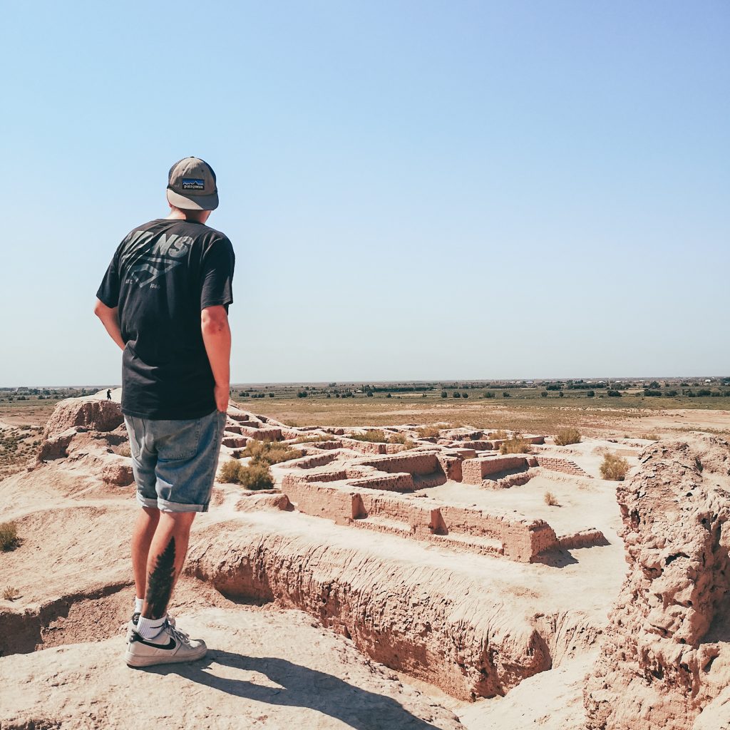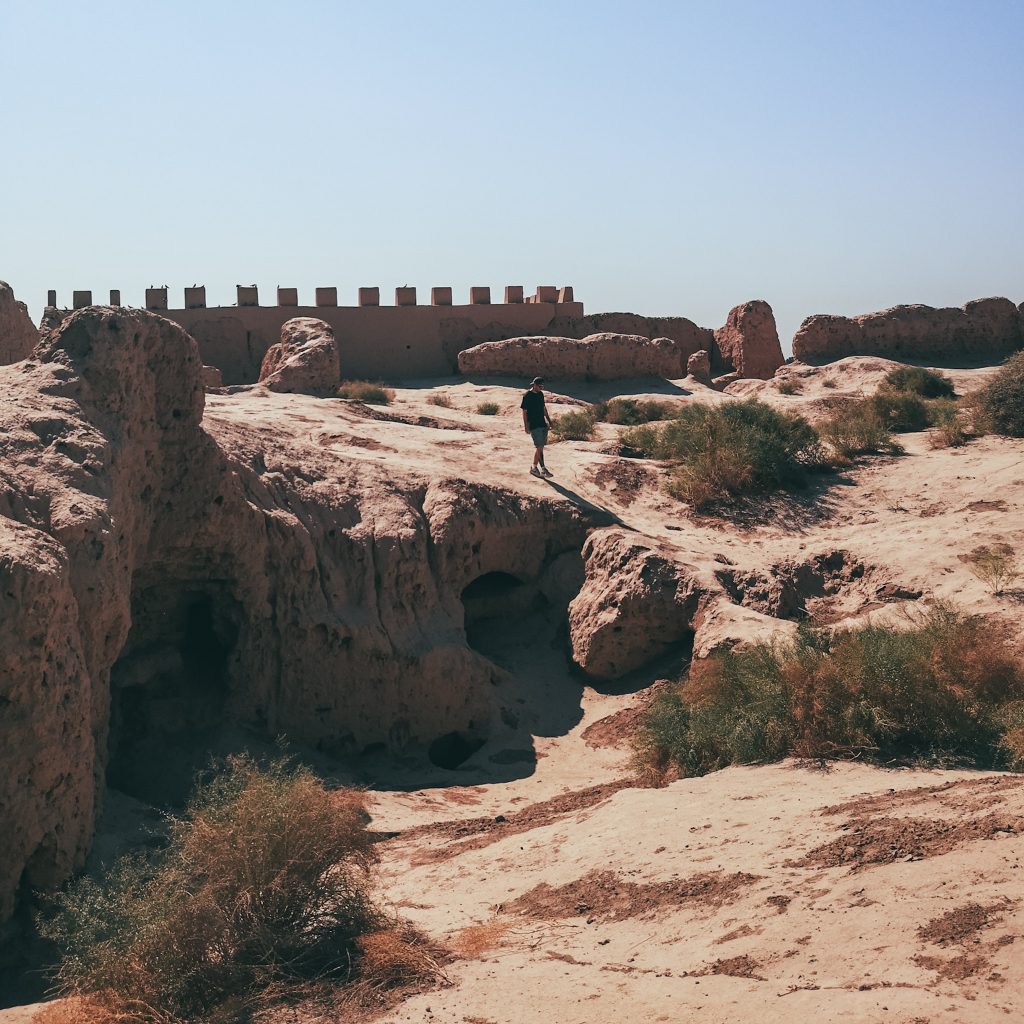 In der Nähe von Xiva gibt es ein paar sehr alte Ruinen, die mit einer Tour besichtigt werden können. Statt mit einer großen Touri-Gruppe, sind wir mit zwei Spaniern und Dilchat unterwegs. Er ist heute unser Fahrer und das spanische Paar hat netterweise zugestimmt, dass wir uns noch mit ins Auto quetschen und dafür die Kosten für die Tour splitten.