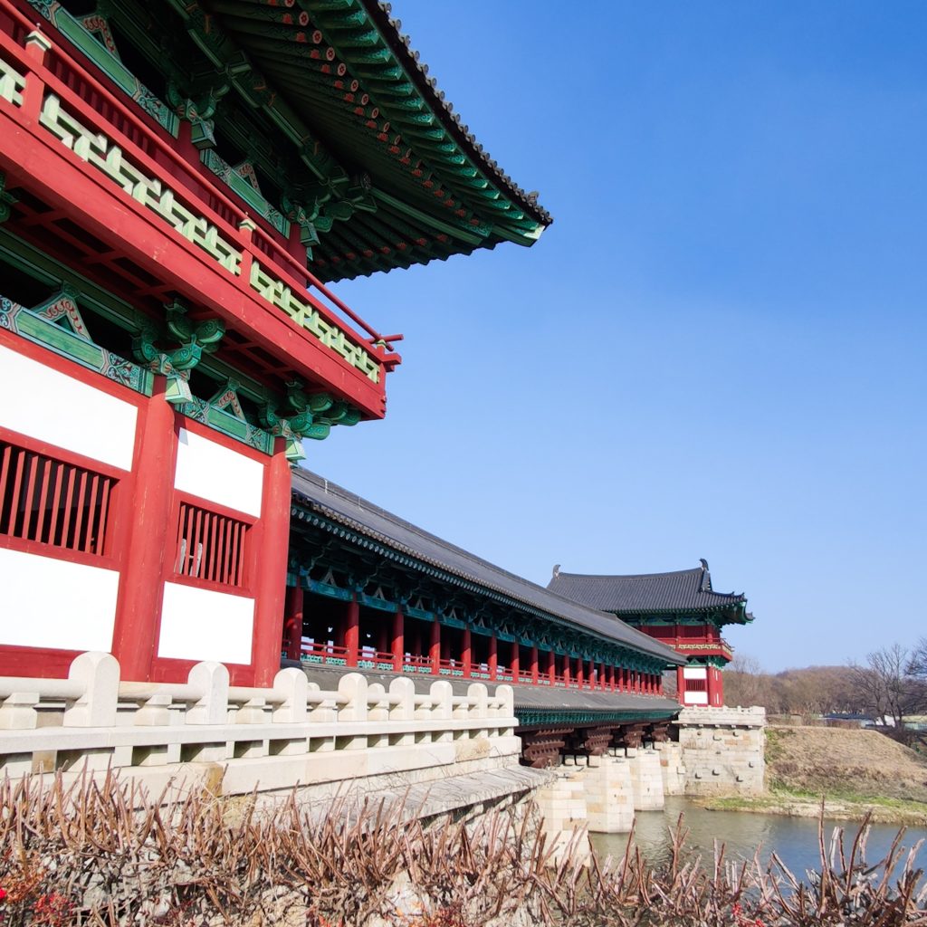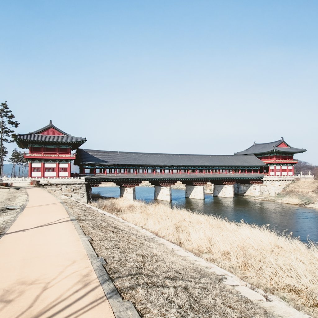 Die Woljeonggyo Brücke ist fast unser Highlight. Es handelt sich hierbei um die größte Holzbrücke Südkoreas. Sie wurde erst 2012 restauriert und ist somit in einem sehr guten Zustand. In den kleinen Türmchen an jeder Seite kann man sich Bilder von früher sowie das alte, ursprünglich Holz anschauen. Im Grunde genommen gefällt sie uns, weil sie einfach hübsch ist. Besonders am Abend soll sie sehr schön beleuchtet sein.