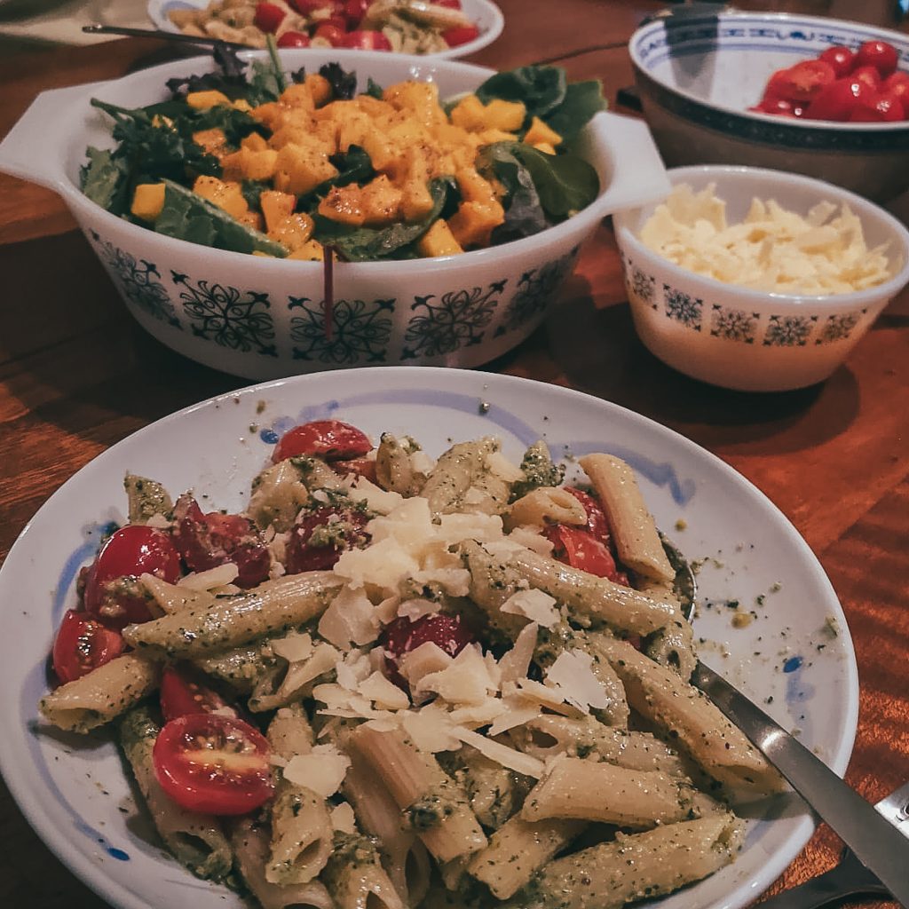 Na klar, wir freuen uns sehr über die voll ausgestattete Küche. Erstmal checken wir, was es so alles an Geräten gibt und schmieden dann Pläne, wie wir diese einsetzen. Nachdem wir den Mixer/Hexler gefunden haben, sind wir uns schnell einig: Pistazien-Minz-Pesto! Darauf haben wir schon seit Wochen Lust, in Deutschland ist das Pesto in Kombination mit Pasta, frischen Tomaten und Mozzarella regelmäßig in unsere Bäuche gewandert. Dafür nehmen wir auch einen längeren Weg in einen größeren Supermarkt in Kauf. Gleichzeitig können wir dann auch mal ein bisschen die Gegend unter die Lupe nehmen und auf unser Schrittziel kommen. Wir spazieren ca. 45 Minuten zum Supermarkt. Hier gibt’s einiges, aber Käse ist natürlich teuer. Wir verzichten auf Mozzarella, aber natürlich nicht auf Parmesan. Gut geschwitzt kommen wir danach wieder zuhause an. Als kleinen Snack gibt es einen Melonensalat mit Feta und Minze.