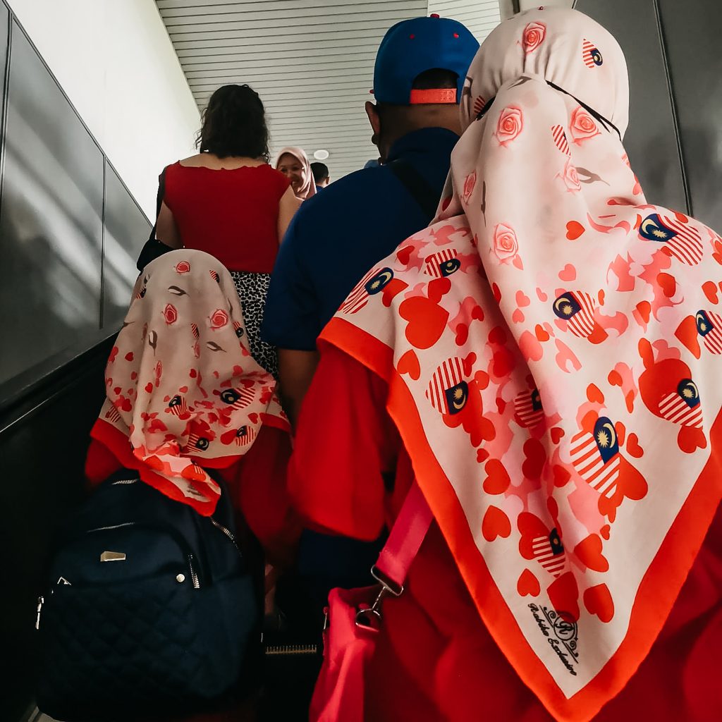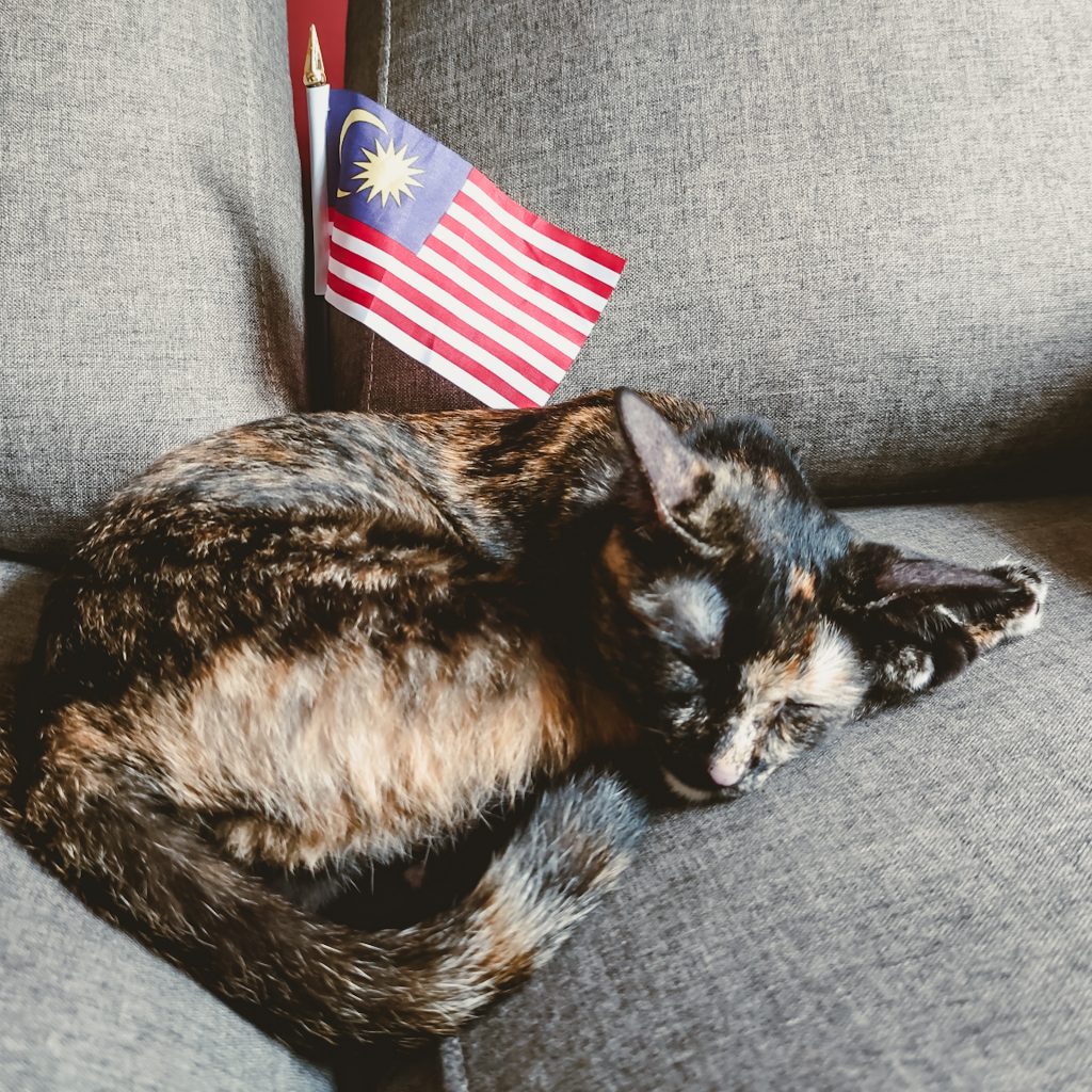 Schon bei der Ankunft in Malaysia haben wir gesehen, dass am 31. August der Nationalfeiertag zur Unabhängigkeit von Malaysia gefeiert wird. Überall haben wir in den letzten Tagen Leuchtreklame für die Feierlichkeiten gesehen. Da wir es mit dem Housesit perfekt vereinbaren konnten, wollen wir den Tag auch ein bisschen „miterleben“. Tatsächlich ist es aber nicht so einfach, an weitere Infos zu kommen. Anders als wir es uns vorgestellt haben, umfasst dieser Tag hier in erster Linie eine große Parade mit Militär, Feuerwehrleuten und lokalen Gruppen. Diese Parade hat früher am Unabhängigkeitsplatz in der Innenstadt von KL stattgefunden. Seit zwei Jahren ist sie außerhalb der Innenstadt und findet früh morgens statt. In der Nacht auf den 31. gibt ein großes Feuerwerk zur Einleitung in den Tag. Um 7 Uhr morgens beginnt die Parade, um 10 Uhr ist schon alles wieder vorbei. Damit möchte man die Hitze und Sonne gegen Mittag umgehen. Das bedeutet im Umkehrschluss aber auch, dass man seeeehr früh aufstehen und dorthin fahren muss, um einen guten Platz für die Parade zu bekommen. Laut Infos im Internet, fahren die Züge ab 4 Uhr morgens. Von uns aus brauchen wir laut Maps auch über eine Stunde. Naja, dabei dürfen wir ja Tora und ihre Bedürfnisse nicht vergessen, schließlich möchten wir ihr natürlich noch ihr Frühstück geben, bevor wir losziehen. Unser Wecker steht zwar auf 5 Uhr, aber wir schaffen es nicht so wirklich aufzustehen. Die Snooze Taste ist zu verlockend, da trifft Tora keine Schuld (sie feiert währenddessen wohl schon den Nationalfeiertag). Sie ist aber natürlich schon bereit ihr Frühstück serviert zu bekommen. Weil wir mit allem etwas länger brauchen, kommen wir erst um kurz nach 7 Uhr los. Die Bahnfahrt verläuft problemlos und es ist nicht viel los, da wir wahrscheinlich so spät dran sind.