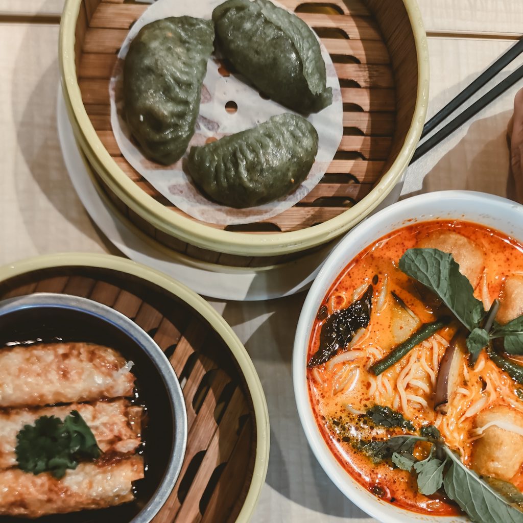 Vorab haben wir es schon bei Google gesehen, in direkter Umgebung vom Hotel gibt es mehrere vegetarische Restaurants. Darauf freuen wir uns. Endlich mal wieder alles bestellen können. Wir können uns ehrlich gesagt kaum entscheiden und bestellen eine Laksa als Hauptgericht und zwei Vorspeisen in Form von grünen Dumplings und einer Art Frühlingsrollen. Es schmeckt wahnsinnig gut und ist nicht mal teuer. Ein Träumchen. Danach machen wir noch einen Abstecher für das Dessert zu 7-Eleven und machen es uns dann in unserem Hotelzimmer gemütlich. Wir wollen möglichst früh in unser Zuhause für die folgenden drei Tage.
