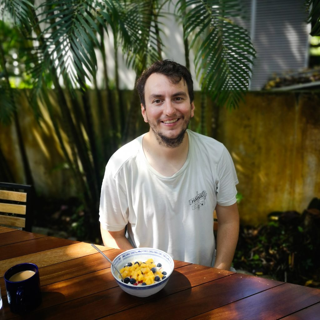 Zu Fuß machen wir uns mit den Rücksäcken auf den Weg zu unserem temporären Zuhause. Als wir nach ca. 20 Minuten ankommen, sind wir beide nassgeschwitzt. Es fühlt sich noch etwas komisch und ungewohnt an. Es ist halt doch etwas anderes in einem anderen „Zuhause“ zu sein und in der Küche erstmal alle Schubladen zu öffnen. Was macht man da am besten? Erstmal einen Kaffee trinken und Frühstücken. Tora ist nämlich außer Haus, jeden Vormittag treibt sie sich nach dem Frühstück in ihrer Hood herum. Anushia und Daniel haben uns Sauerteigbrot und Käse hinterlassen – ein Traum 😊 dazu machen wir uns noch etwas Joghurt mit Obst und machen es uns auf der Terrasse bequem.