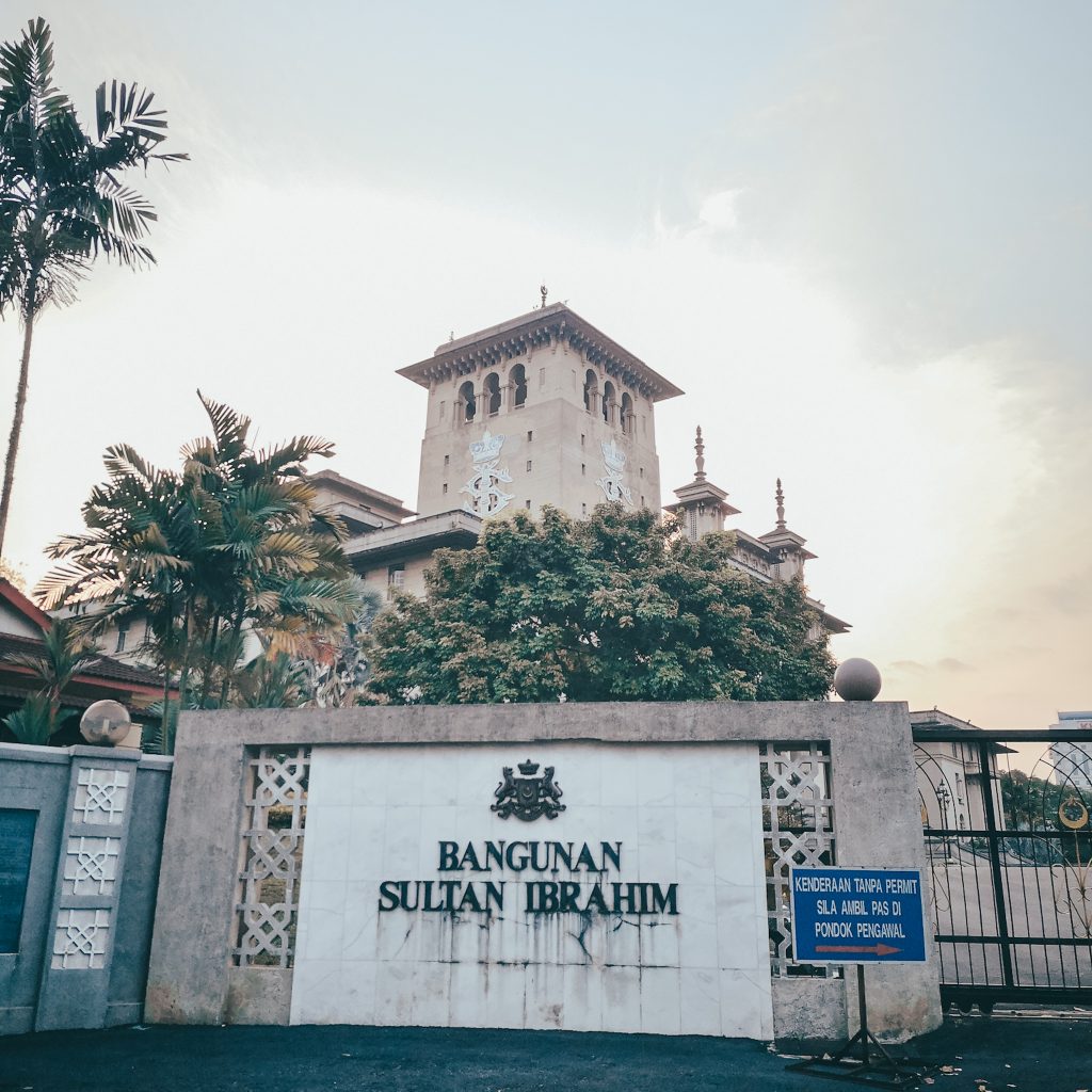 Anushia war so lieb und hat uns noch einen Tipp gegeben. Es gibt eine Art Wanderroute durch die Altstadt mit ein paar auf Google Maps markierten Highlights, die wir nun zu Fuß abgehen. Nur die alte Bäckerei, in der es köstliches Bananenbrot geben soll, ist leider schon geschlossen. Am Wasser angekommen, können wir schon einen Blick auf Singapur werfen, das ist wirklich nur ein Katzensprung entfernt. Wir laufen etwas durch die Straßen und sehen eine alte Foodstreet, den Aufbau eines Nachtmarktes und zahlreiche Cafés und Restaurants. Das ehemalige Gebäude des Sultans ist mittlerweile der Regierungssitz, wir schauen es uns nur von außen an. Etwas irritiert sind wir von der ein oder anderem Beschilderung, die das Betreten von einem eingezäunten Grundstück untersagt. Da hält man sich wohl besser an die Vorgaben.