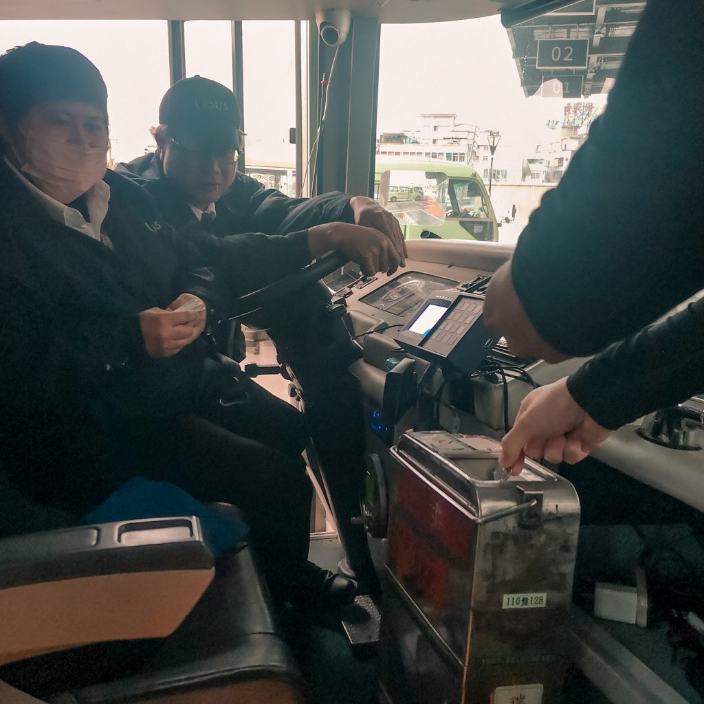 Die Strecke geht immer wieder leicht bergauf uns bergab. Mal durch ein Tal mit Brücken, mal auf einer Anhöhe entlang der Hügel. Aber ganz ehrlich? Heute zieht es sich besonders. Mittlerweile liegt Caro ganz gut in der Zeit, aber es zieht sich in die Länge und der Po macht sich bemerkbar. So ist die Freude und Erleichterung gegen 14 Uhr nach 88 km in Yuli anzukommen sehr groß. Caro besorgt sich als erstes das Zugticket und macht dann eine ausgiebige Mittagspause mit heißer Suppe beim 7eleven. Pünktlich um 16 Uhr kommt der Zug und wir können gemeinsam weiterfahren. Wir berichten uns gegenseitig von unserem Tag, hören ein bisschen gemeinsam Podcast und sprechen über unsere weiteren Planungen.
