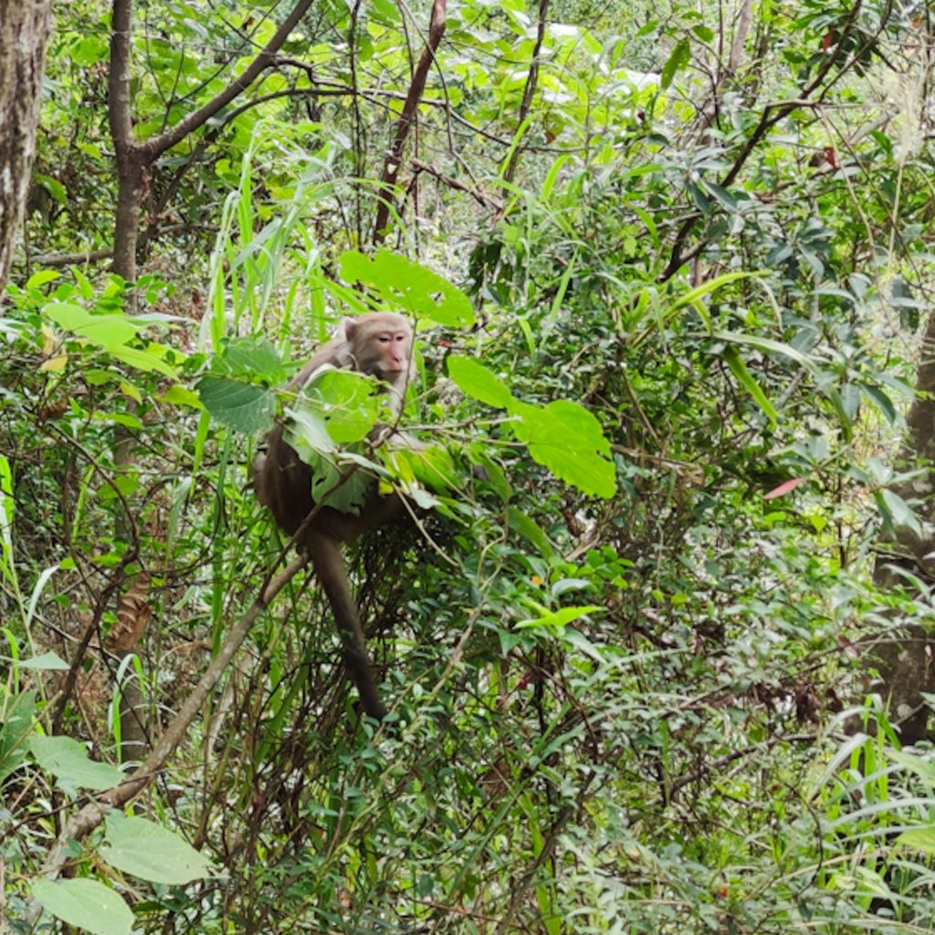 Da aber die Sonne scheint, macht es gar nichts und wir trocknen schnell wieder. Wir gehen den gleichen Weg zurück und legen im Ort eine kurze Pause ein. Denn wir wissen ja alle: Jausenzeit ist die beste Zeit! Das gilt übrigens auch dann, wenn man statt einer köstlichen Käsestulle die Reste vom Vortag vespert. Gut, dass wir uns nochmal einen zweiten Spot für unsere Pause ausgesucht haben. Die örtlichen Affen sind auf Beutezug und haben einem Kind schon eine Plastiktüte mit Essen entrissen. Sobald wir fertig sind, machen wir uns auch aus dem Staub.