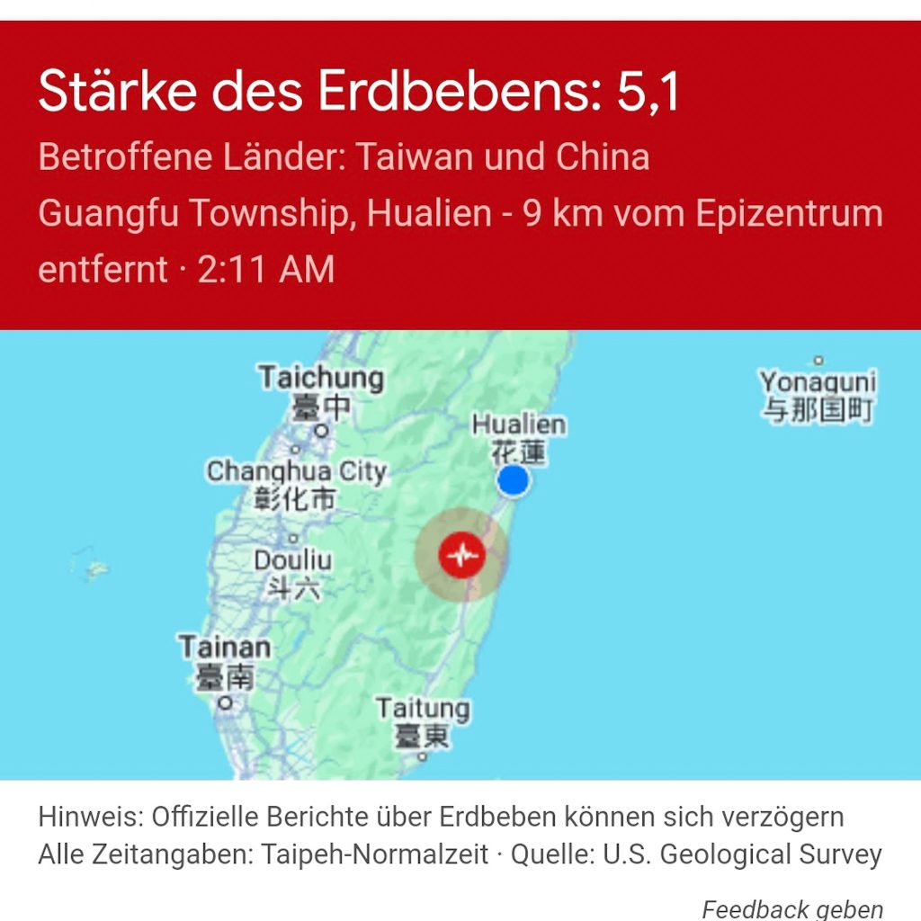 Im Caros Kopf rasen schon die Gedanken, dass es ziemlich arg bebt und dass wir uns gerade im fünften Stock befinden. Müssen wir jetzt nach unten? Was machen die anderen taiwanischen Bettnachbarn? Die werden es sicher am besten wissen. So langsam wacht Konsti auch auf: Ach, ein Erdbeben und noch nicht der Wecker? Dann müssen wir ja noch gar nicht aufstehen. Dass hier die Vorfreude des Weiterschlafens überwiegt, kann Caro weniger nachempfinden. Die letztendliche Frage des Aufstehens hat sie auch noch nicht abgehakt. Der junge Mann von rechts oben ist jedenfalls aufgestanden und checkt die Lage im Treppenhaus. Da sind auf jeden Fall ein paar Stimmen zu hören. Aber das Beben lässt auch langsam nach. Er kommt wieder zurück ins Zimmer. Dann hört es ganz auf. Und während Konsti sich schon wieder den süßen Träumen und seinem restlichen Schönheitsschlaf widmet, googelt Caro erstmal, wie wahrscheinlich Nachbeben sind und wie stark ein Beben der Stärke 4.9 eingeordnet werden kann (ganz interessant: Die Richter-Skala, die man zur Messung von Erdbeben nutzt und die nicht so heißt, weil irgendetwas ausgerichtet wird, sondern nur weil der Erfinder der Skala Richter heißt, ist eine logarithmische Skala. Heißt, ein Beben der Stärke 4,9 ist deutlich schwerer, als ein Beben der Stärke 3, aber auch lang nicht so schlimm wie ein Beben der Stärke 6). Aber auch Caro beschließt irgendwann, dass der Schlaf langsam wieder an Priorität gewinnen sollte.