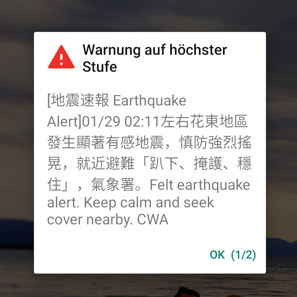 Zurück zu dem tatsächlichen Überraschungsgast in der Nacht. Caro sitzt kerzengerade im Bett. Es wackelt alles und wie! Da piepen auch schon alle Handys im Zimmer: Erdbebenwarnung, bitte bleiben sie ruhig.