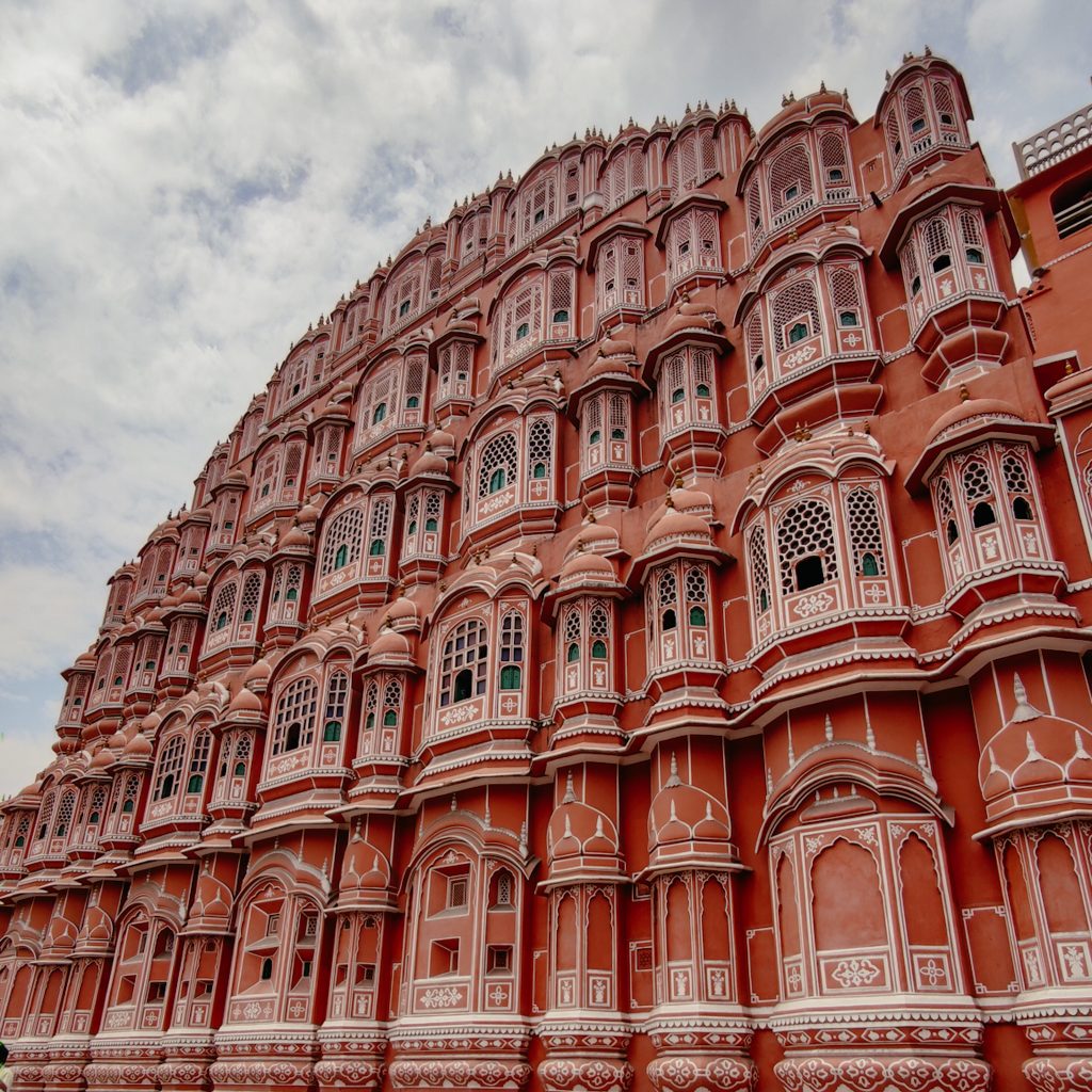 Im Herzen der Stadt liegt das Wahrzeichen von Jaipur: der Hawa Mahal, der rosarote Palast der Winde, der 1799 errichtet und mit zarten Blumenmustern dekoriert wurde. Eigentlich ist der Palast eher eine Fassade mit dahinter liegenden Erkern. Früher diente der Bau den Haremsdamen dazu, das bunte Leben auf den Straßen von Jaipur zu beobachten, ohne selbst gesehen zu werden, denn sich unter das einfache Volk zu mischen war ihnen verboten. Seinen Namen erhielt der Palast der Winde durch die vielen kleinen Gitterfenster, die stets dafür sorgen, dass eine frische Brise durch die Räume zieht.