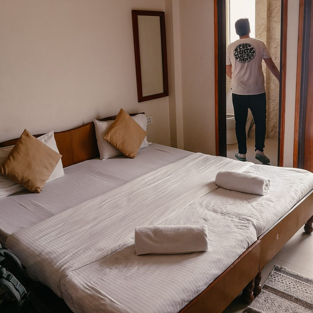 Wir starten morgens um 6.30 Uhr mit dem Bus Richtung Jaipur, uns erwarten ca. 6 Stunden Busfahrt. Über unseren Plätzen gibt es Schlafplätze. Das erste Mal, dass wir diese Kombi sehen.