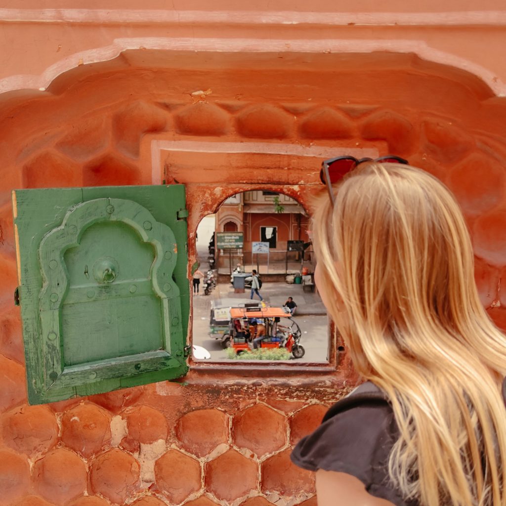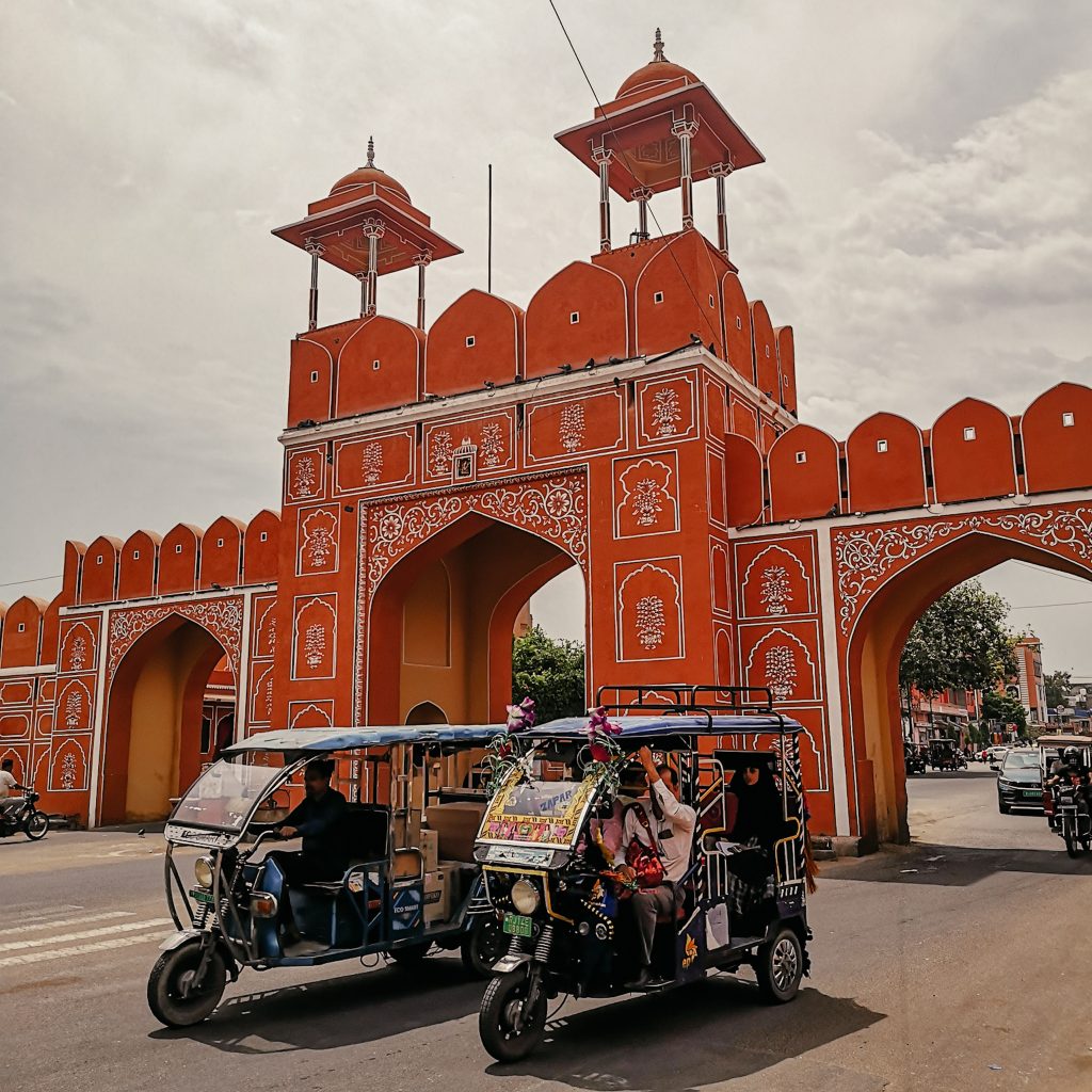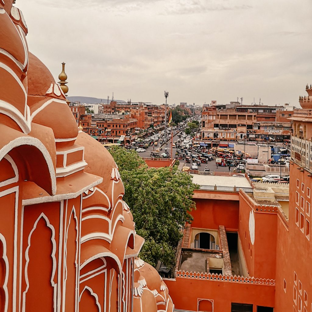 Obwohl Jaipur nur die zehntgrößte Stadt Indiens ist, kann es sich mit knapp über 3 Millionen Einwohner:innen trotzdem sehen lassen. Zu Ehren von Prinz Albert, Großvater der Queen von England, wurde 1876 die Stadt rosa-orange gestrichen und wird seitdem Pink City genannt. Pink steht hier für Gastfreundschaft. Zugegebenermaßen ist es für uns eher orange/terracotta und das auch meistens nur mit viel Wohlwollen, aber wir wollen mal nicht zu deutsch sein. Durch eine Vielzahl von Toren gelangt man in die trubelige Altstadt. Hier gibt es alles, was das Käuferherz begehrt, vor allem das der Tourist:innen. Die ursprüngliche Einteilung der Stadt in Handwerks- und Händlerschichten (ähnlich der europäischen Zünfte im Mittelalter), ist auch heute noch zu erkennen.