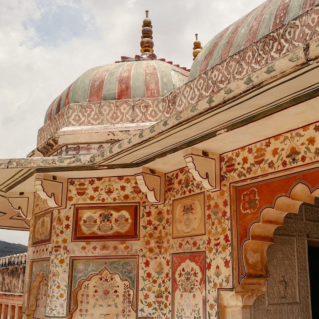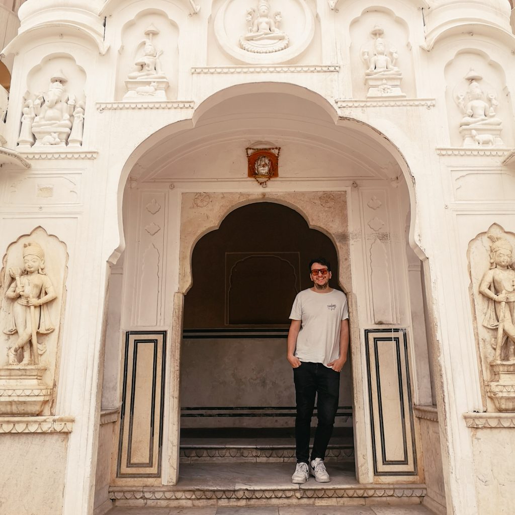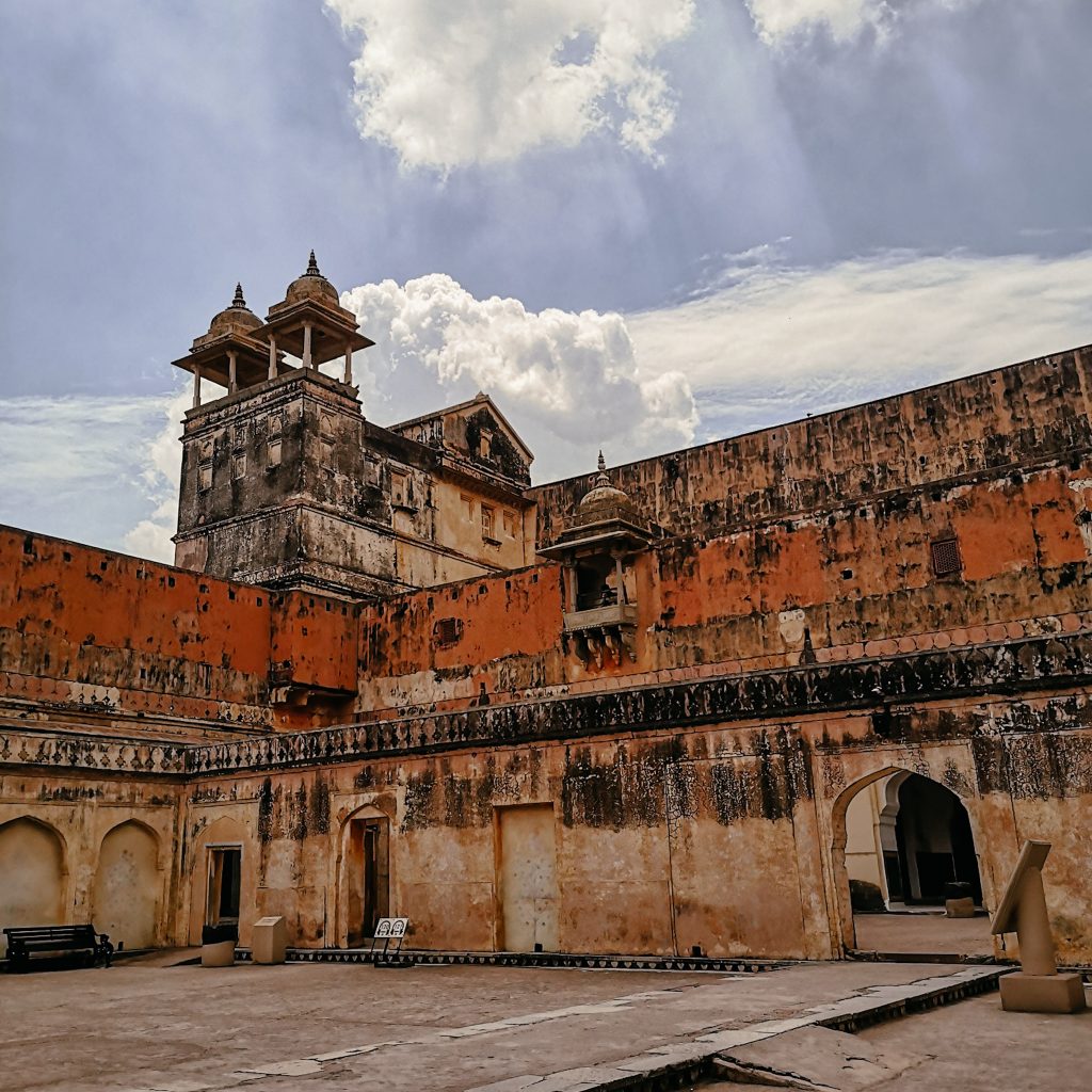 Heute fahren wir nochmal Public Bus. Der nette Typ vom Hostel gibt uns die Nummer des Busses und sagt, dass wir ihn an der Straße einfach anhalten sollen. Gesagt getan. Das war einfacher als gedacht. Das Amber Fort liegt nämlich ca. 11 km außerhalb der Stadt. Der opulente Palast wurde aus Sandstein und Marmor gebaut und erstreckt sich auf vier Etagen. Kein Wunder, Raja Man Singh hatte 12 Königinnen, jede von ihnen hatte ihr eigenes Zimmer. Da braucht man schon ein bisschen Platz. Wir verlieren uns in den verschiedenen Gängen und kommen mehr als einmal wieder an der gleichen Stelle heraus. Im Innenhof befinden sich schön angelegte Gärten und ein Spiegelsaal, in dem zahlreiche Mosaike und kleine Spiegel verbaut sind. Wo man auch hinschaut, befinden sich schöne Malereien, Säulen und wunderschöne Torbögen. Ein kleiner Instagram- und Foto-Hotspot.
